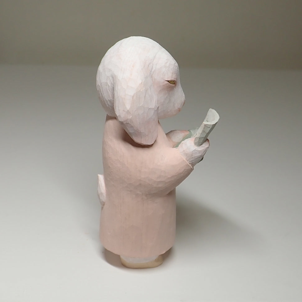 素材はヒノキ、着彩はアクリル絵の具です。