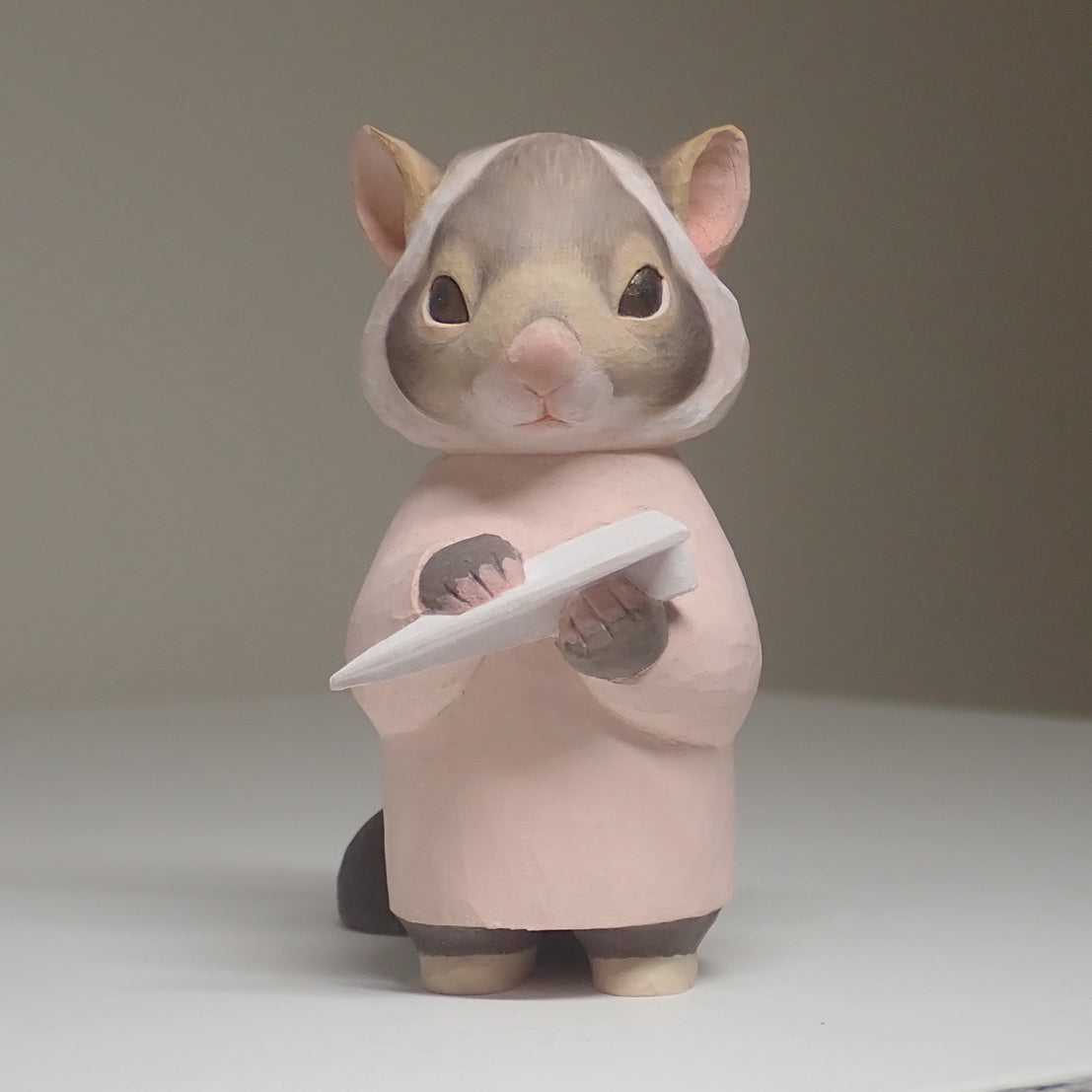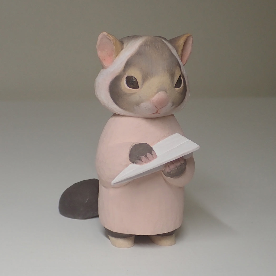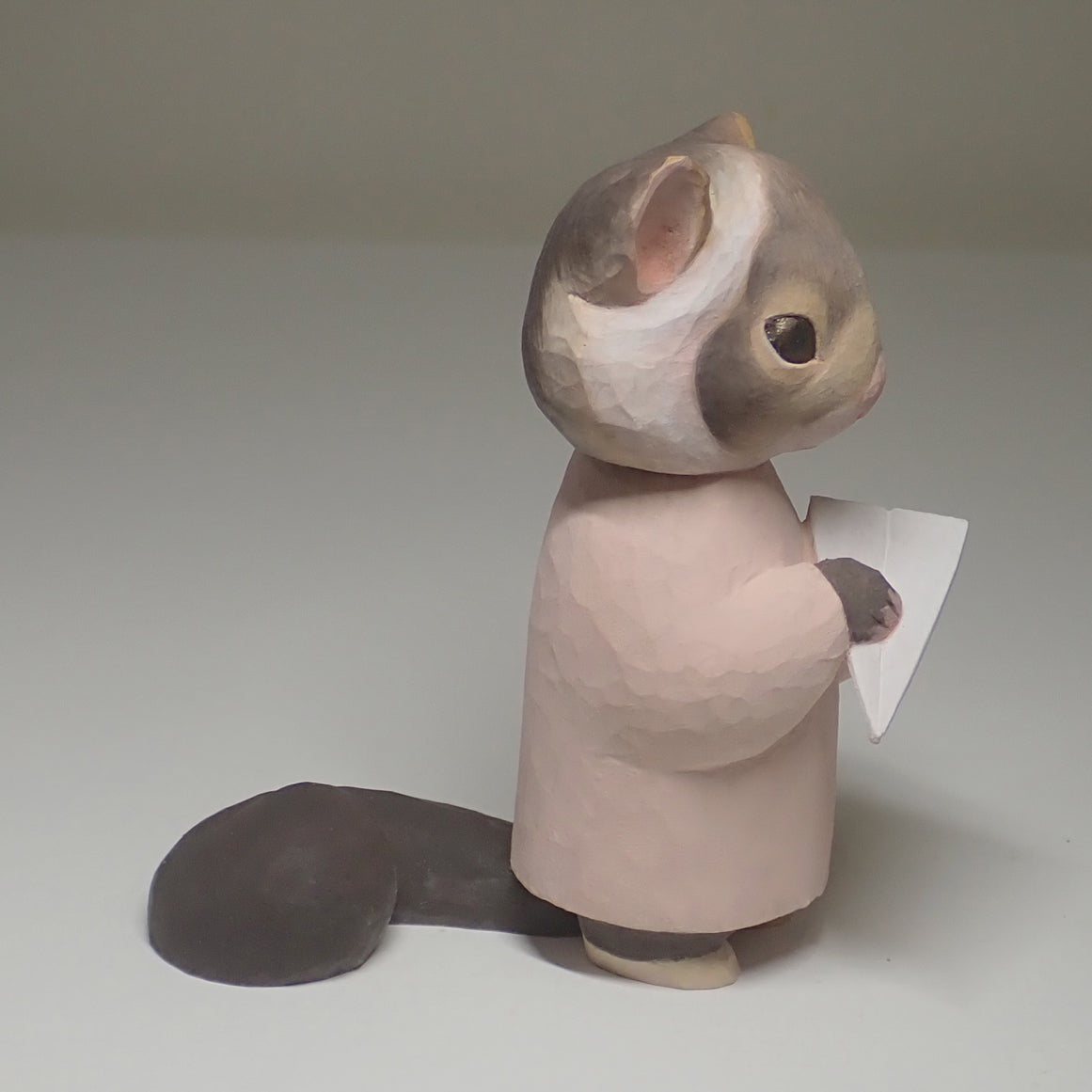 This is a wood carving of a flying squirrel (Petaurista leucogenys).