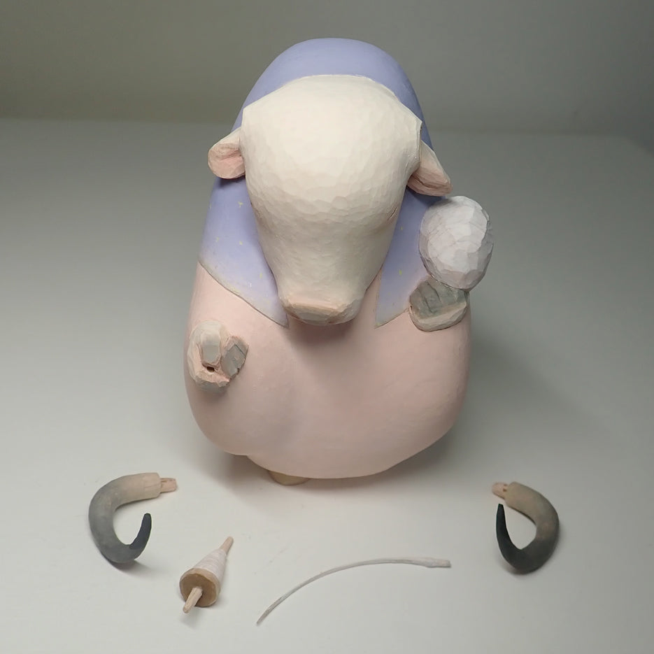 素材はヒノキ(一部竹・アケビ)、着彩はアクリル絵の具です。