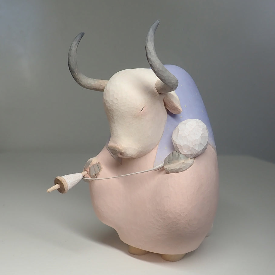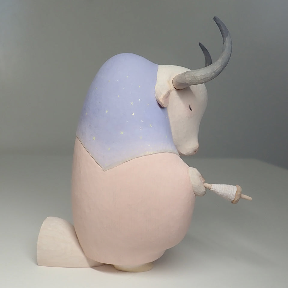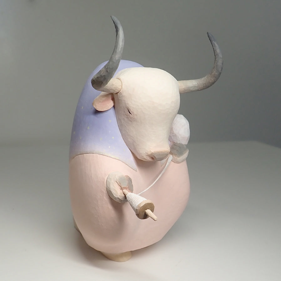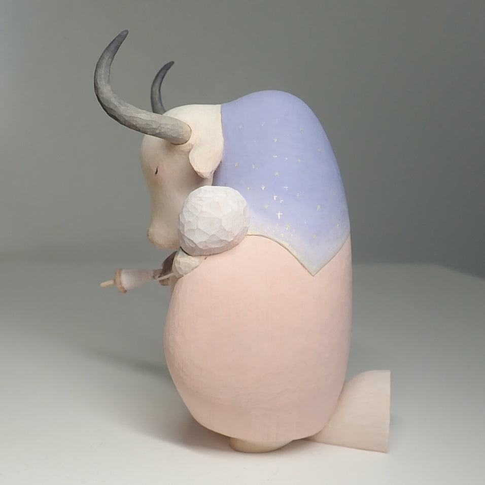 The material is cypress (partly bamboo and akebi) and the coloring is acrylic paint.