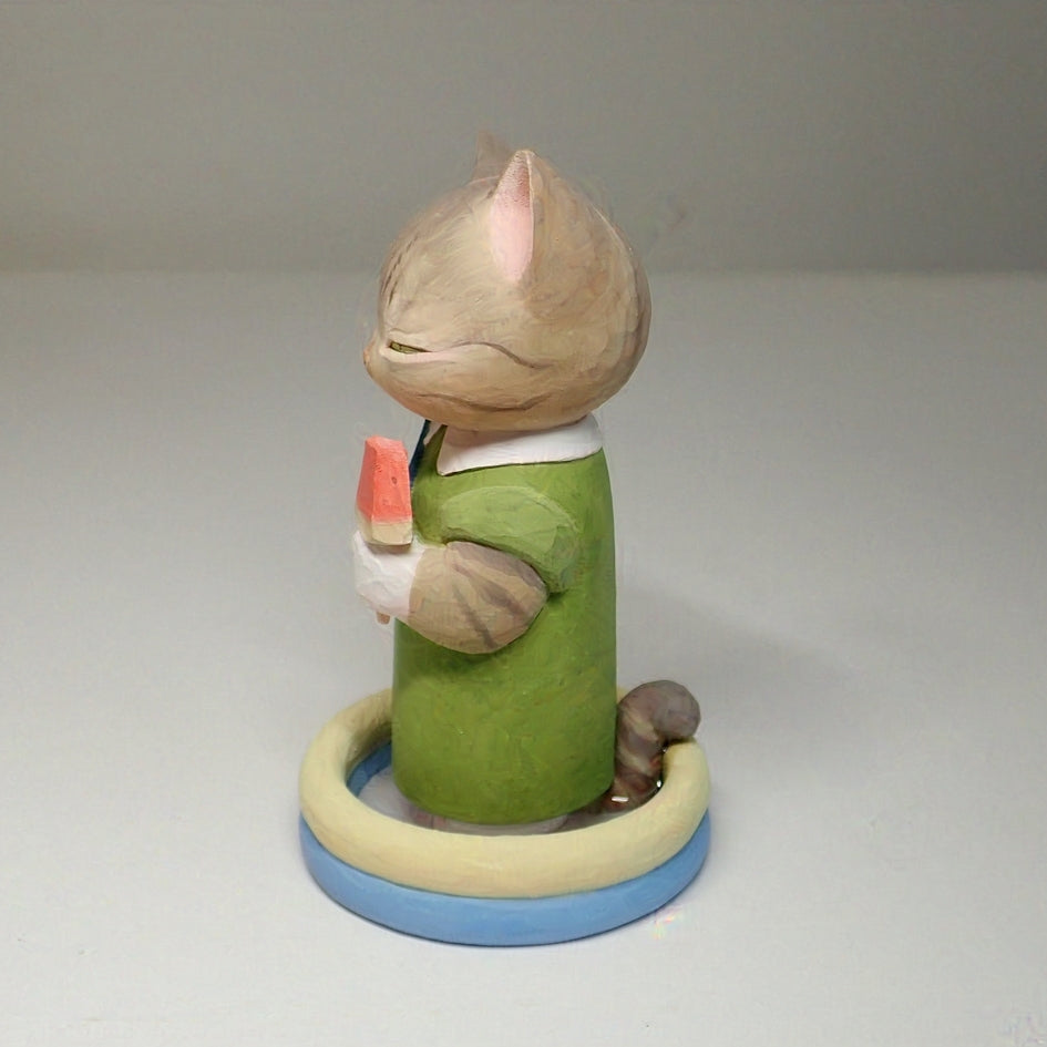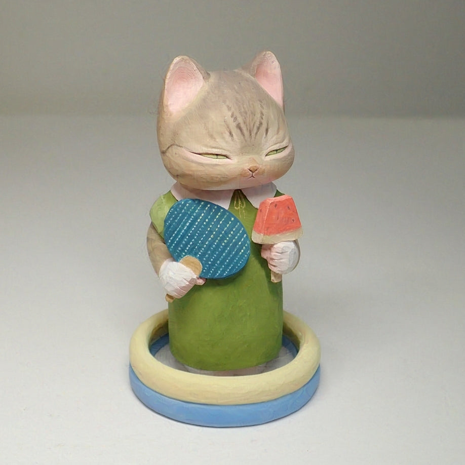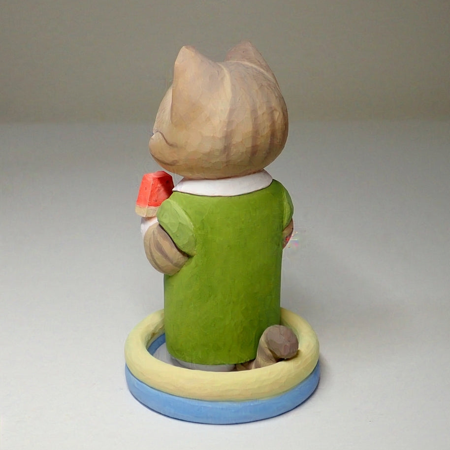 The material is cypress (partly resin), and the coloring is acrylic paint.