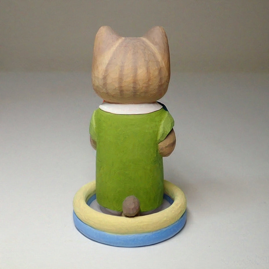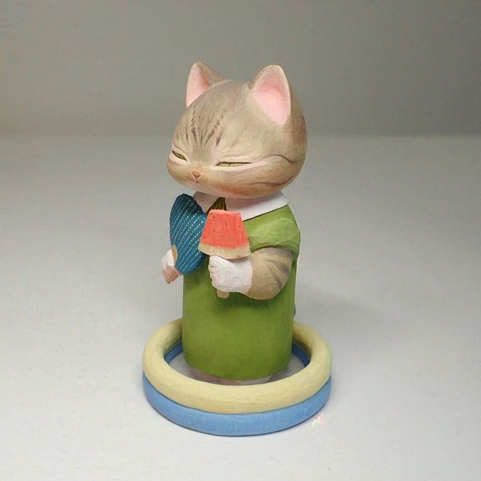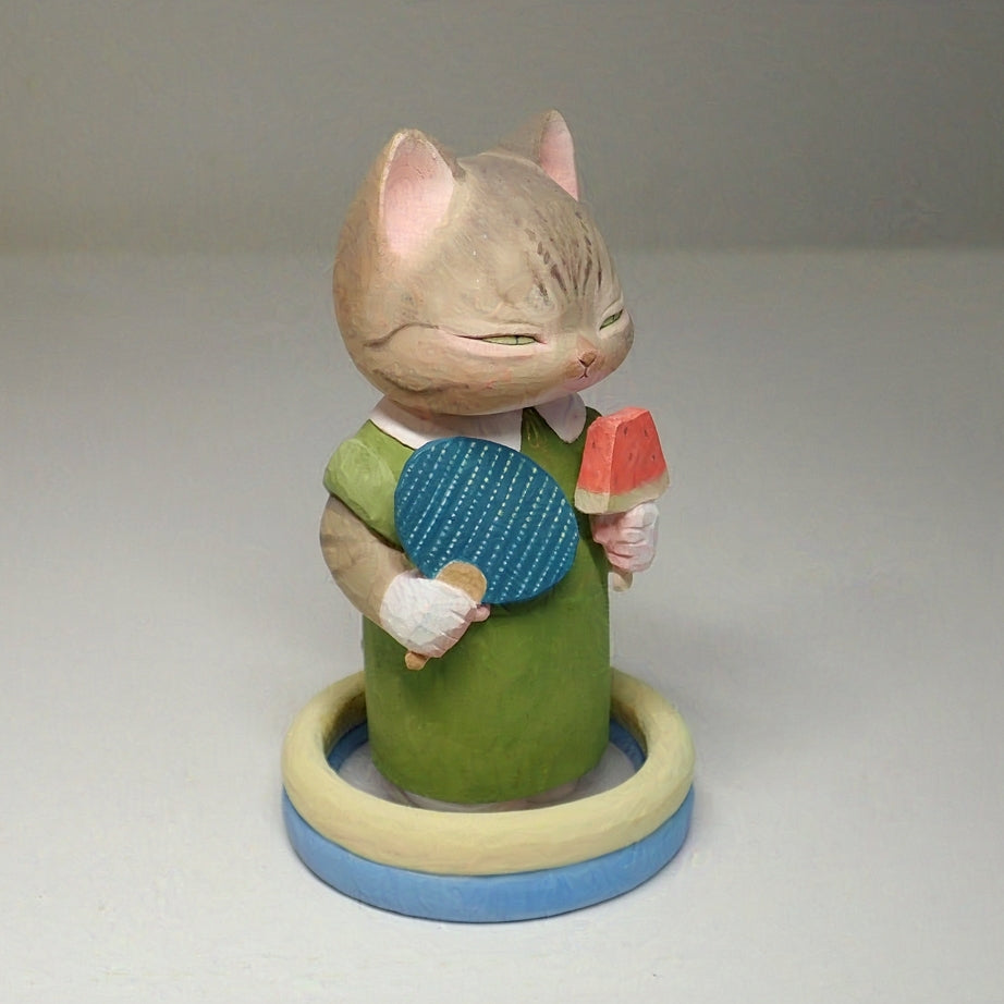 素材はヒノキ(一部樹脂)、着彩はアクリル絵の具です。