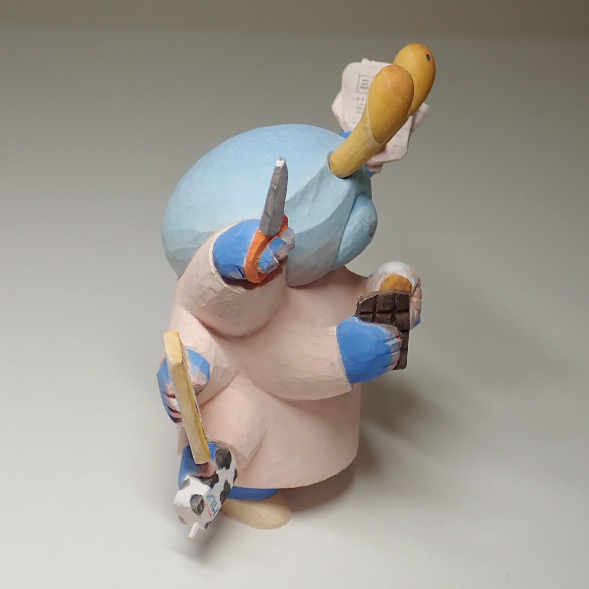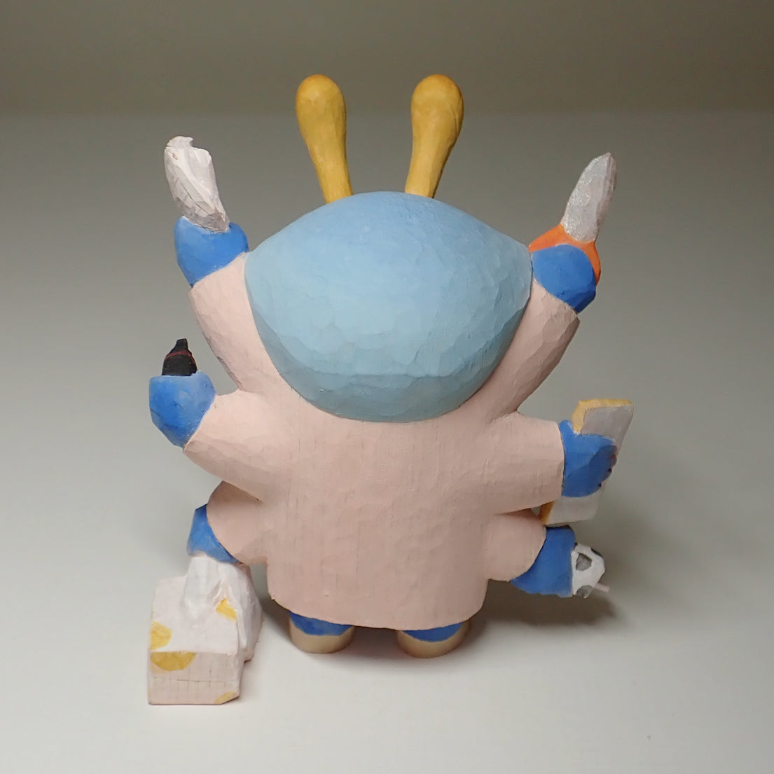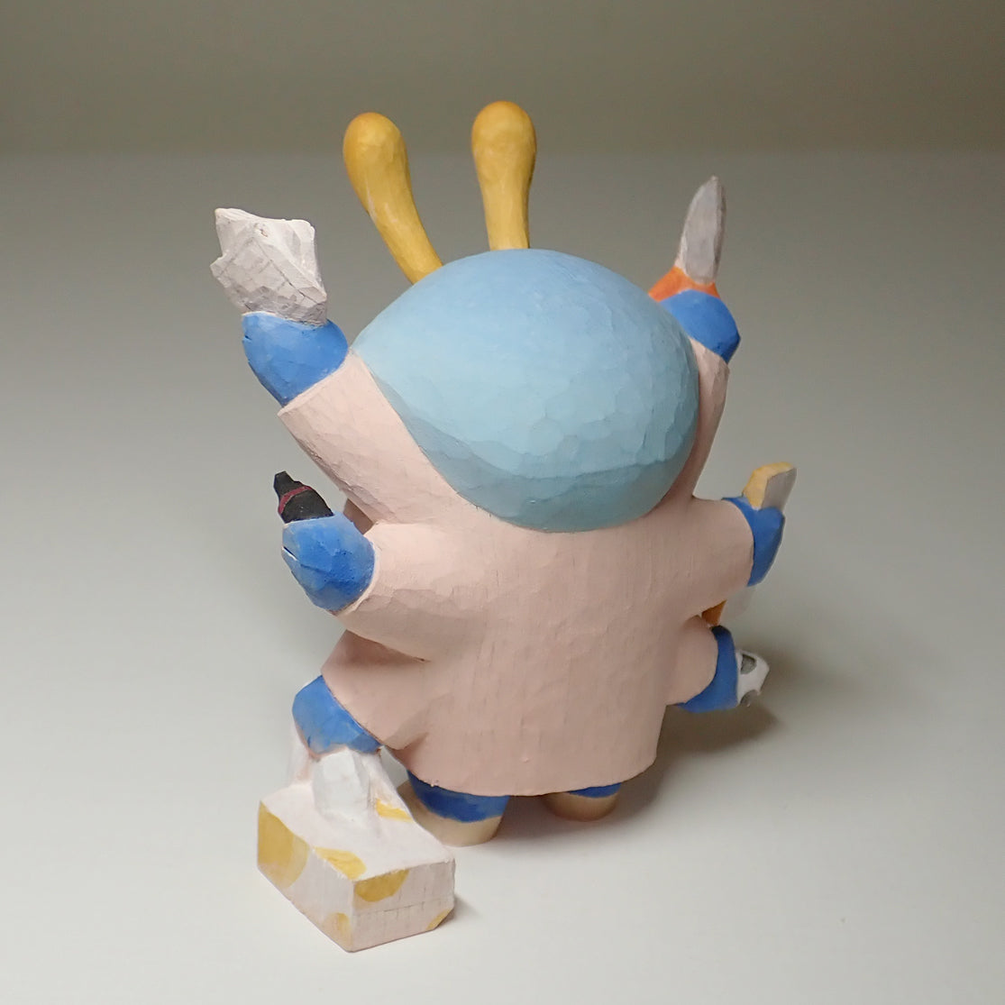 素材はヒノキ(一部竹)、着彩はアクリル絵の具です。
