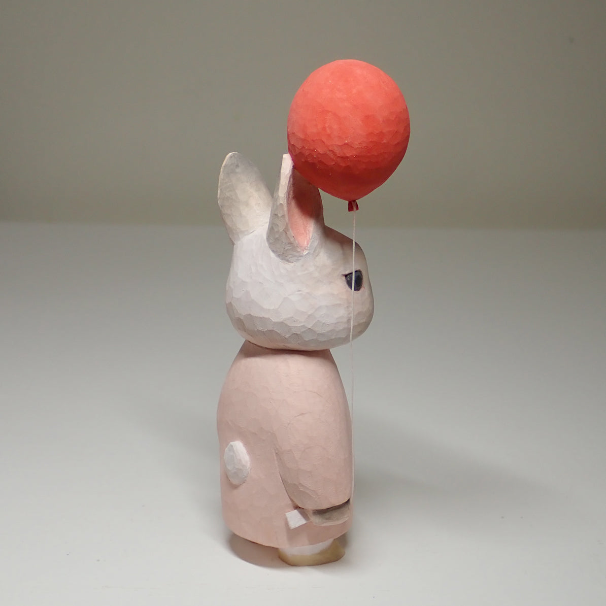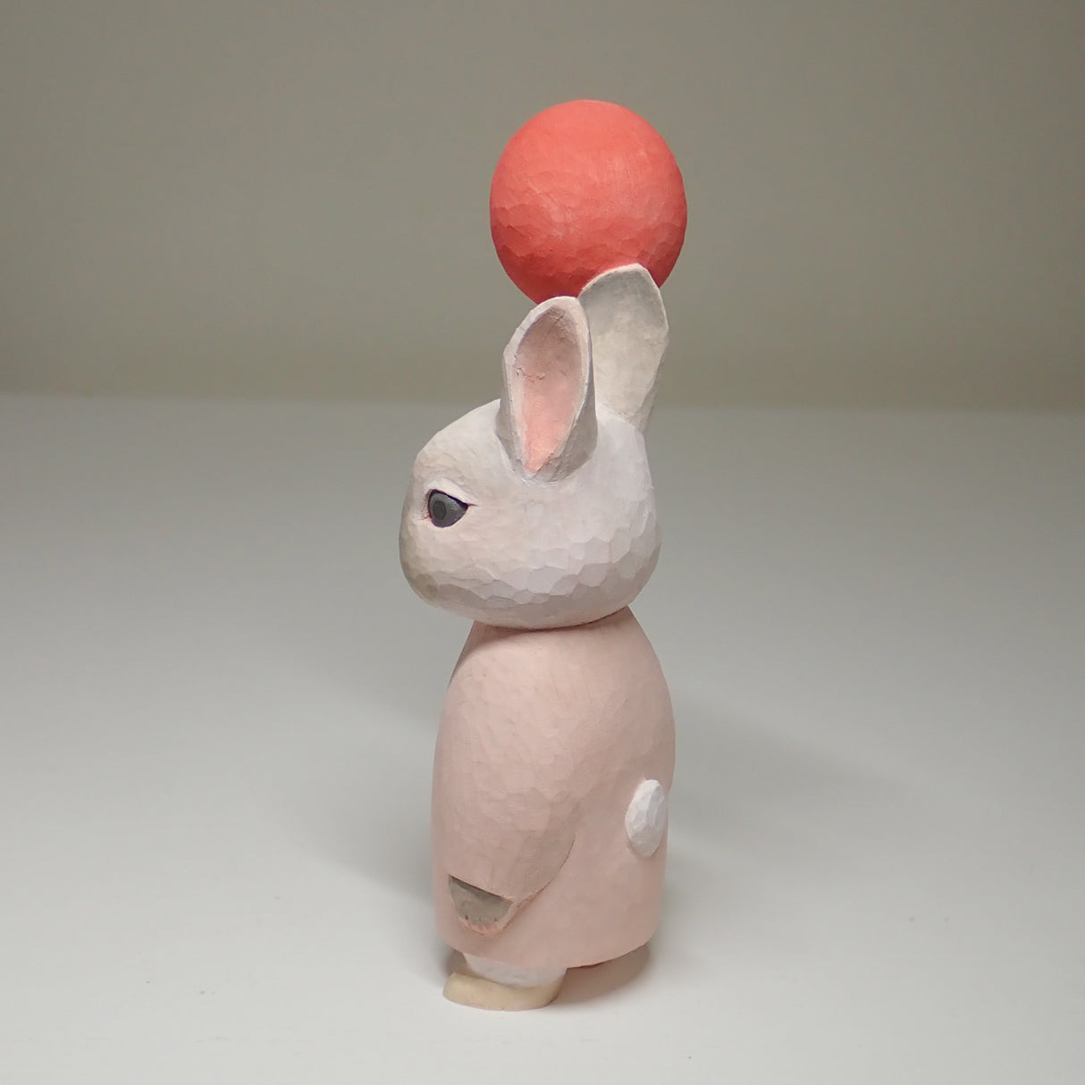 This is a wood carved rabbit (Netherland Dwarf Sable Point).
