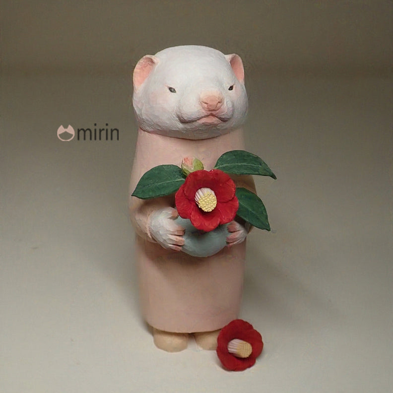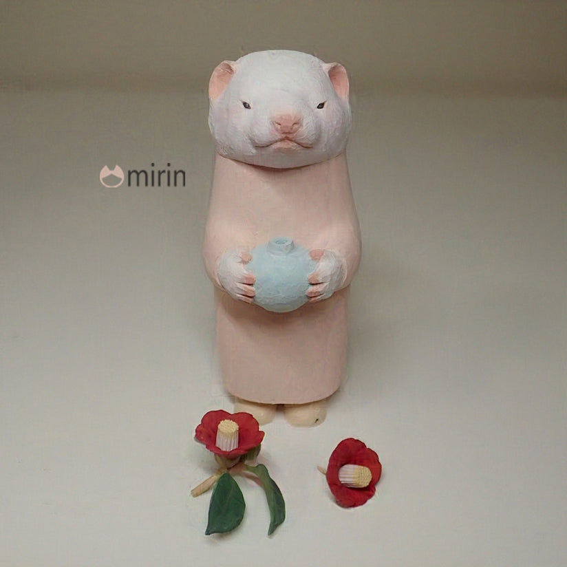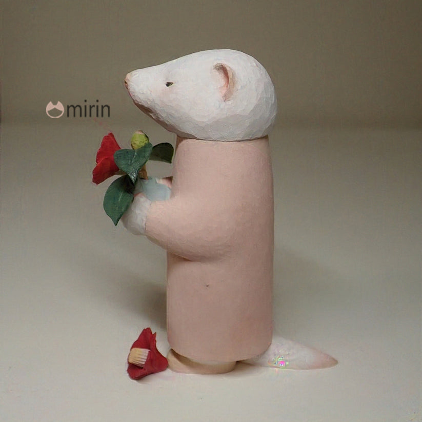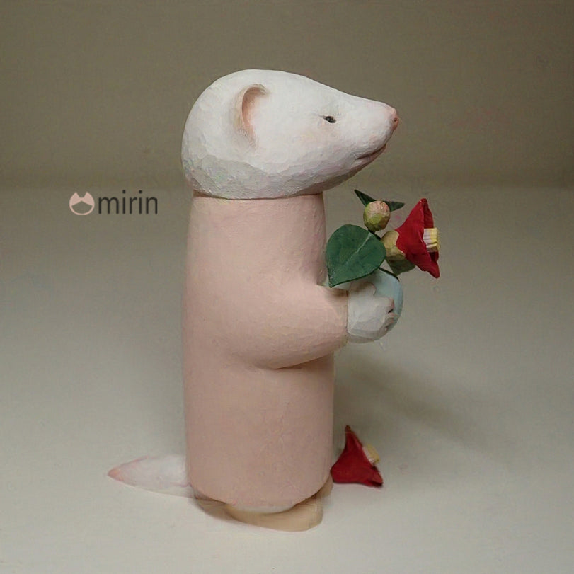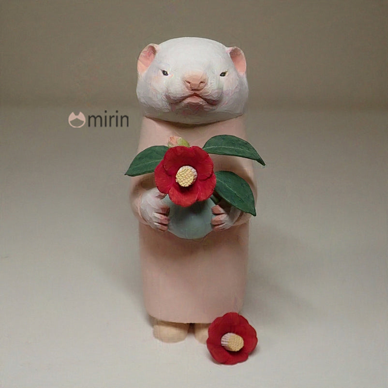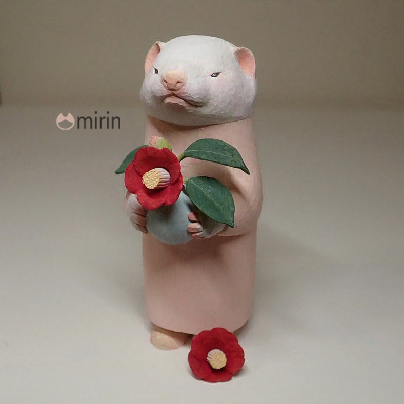 素材はヒノキ(一部竹)、着彩はアクリル絵の具です。