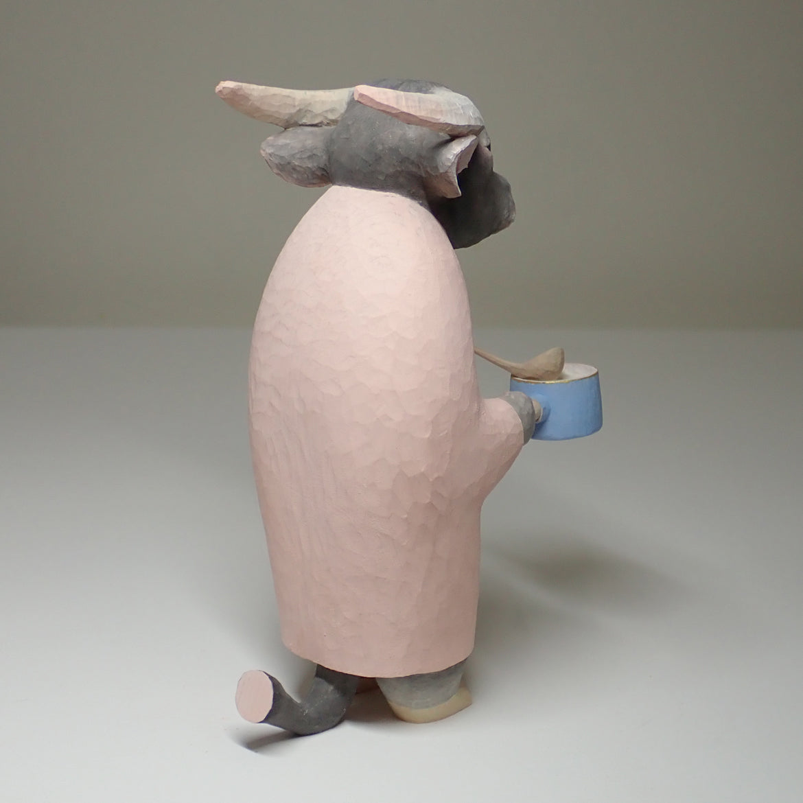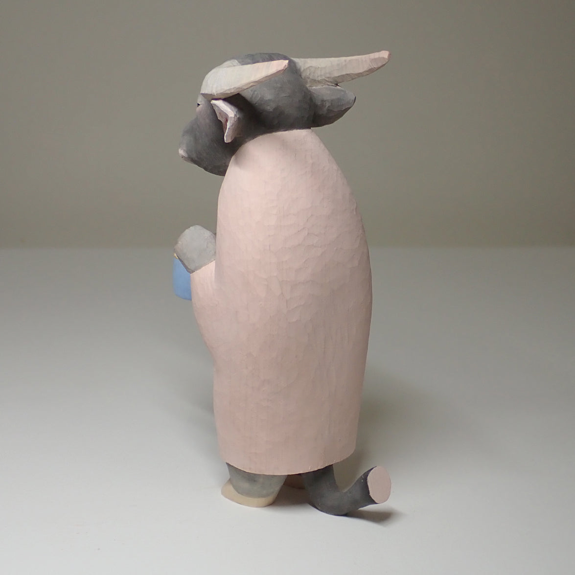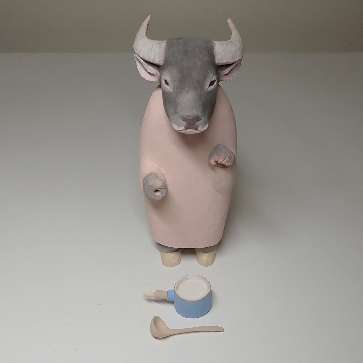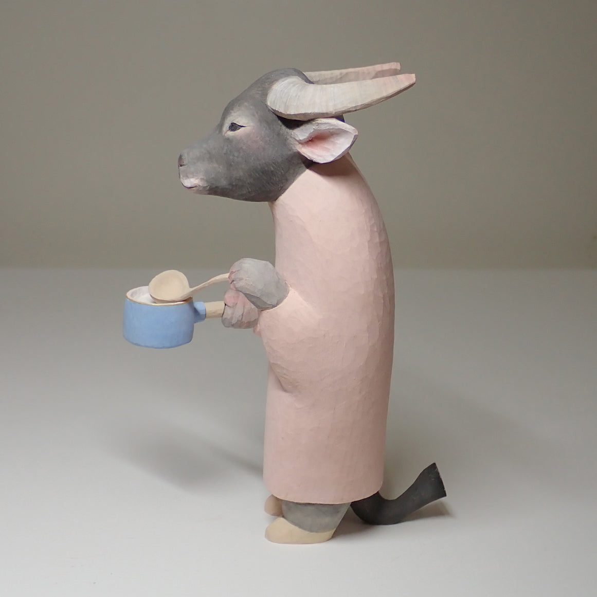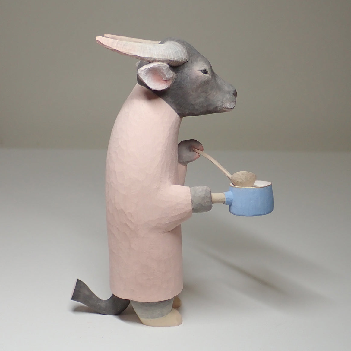 This is a wood carving of a water buffalo (Asian Suigyu).