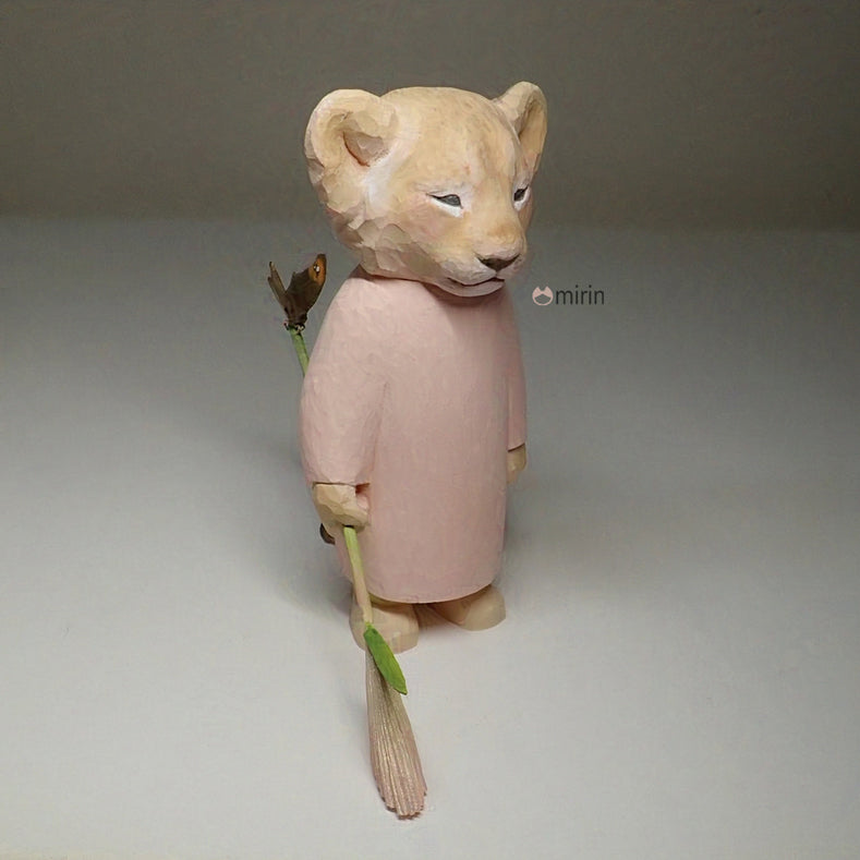素材はヒノキ(一部竹・アケビ)、着彩はアクリル絵の具です。