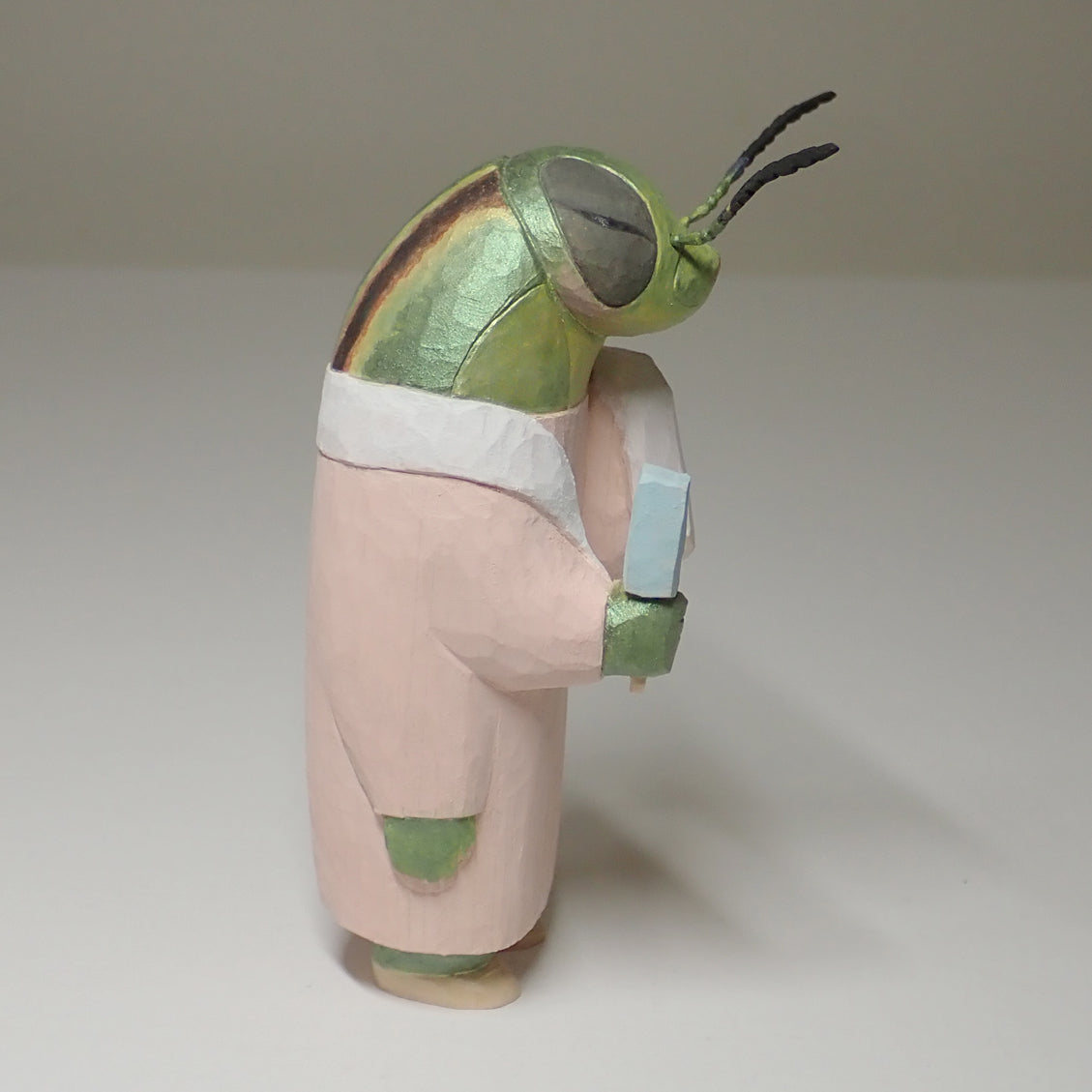 This is a jewel beetle (Chrysochroa fulgidissima) carved from wood.