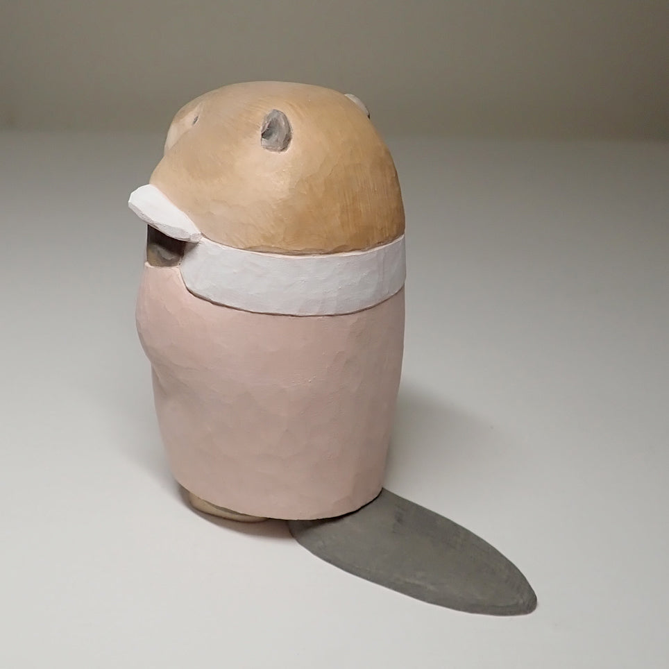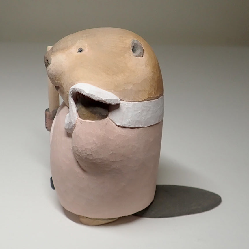 素材はヒノキ(一部竹)、着彩はアクリル絵の具です。