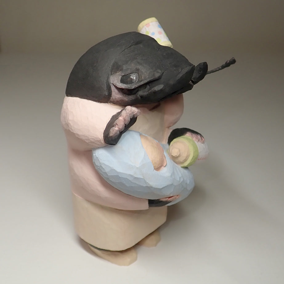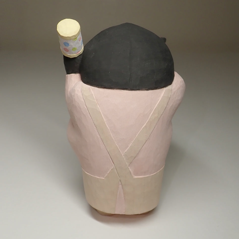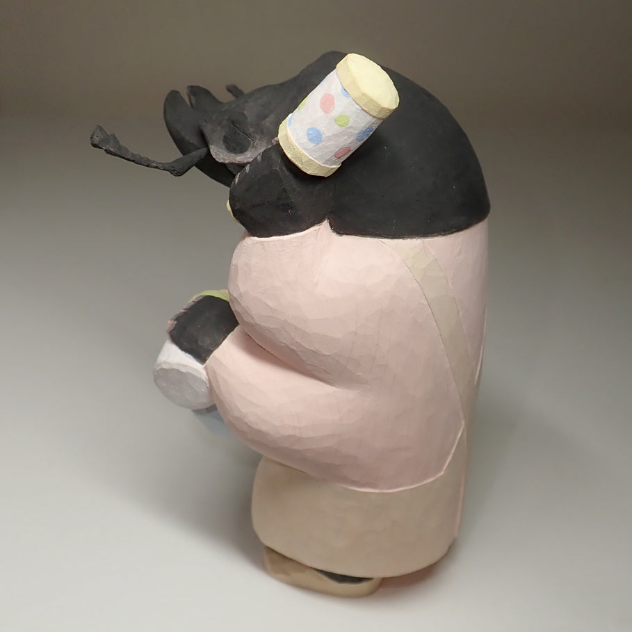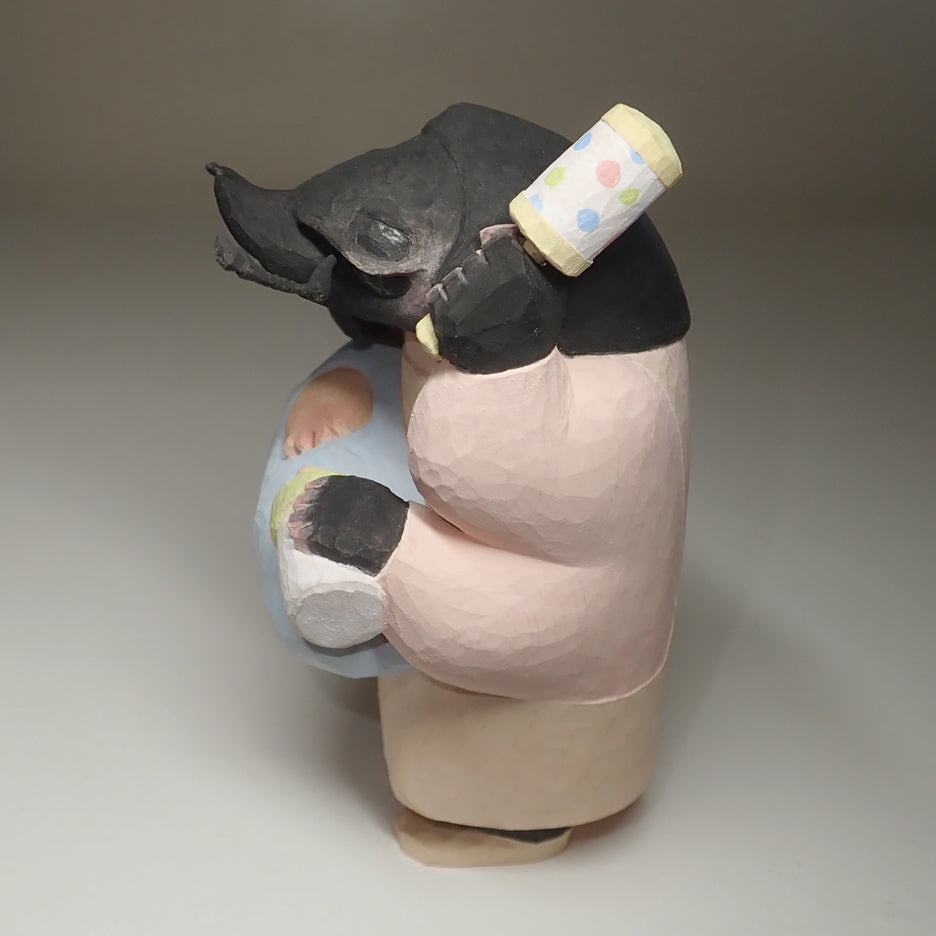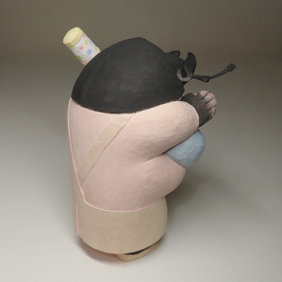 素材はヒノキ(一部竹)、着彩はアクリル絵の具です。