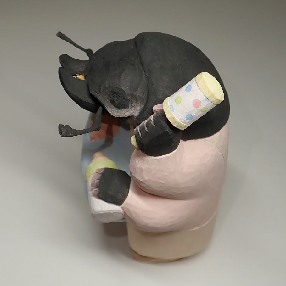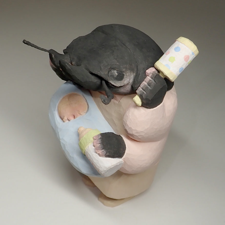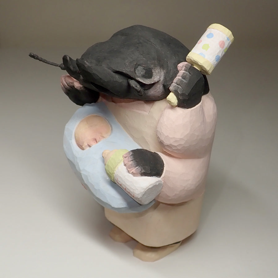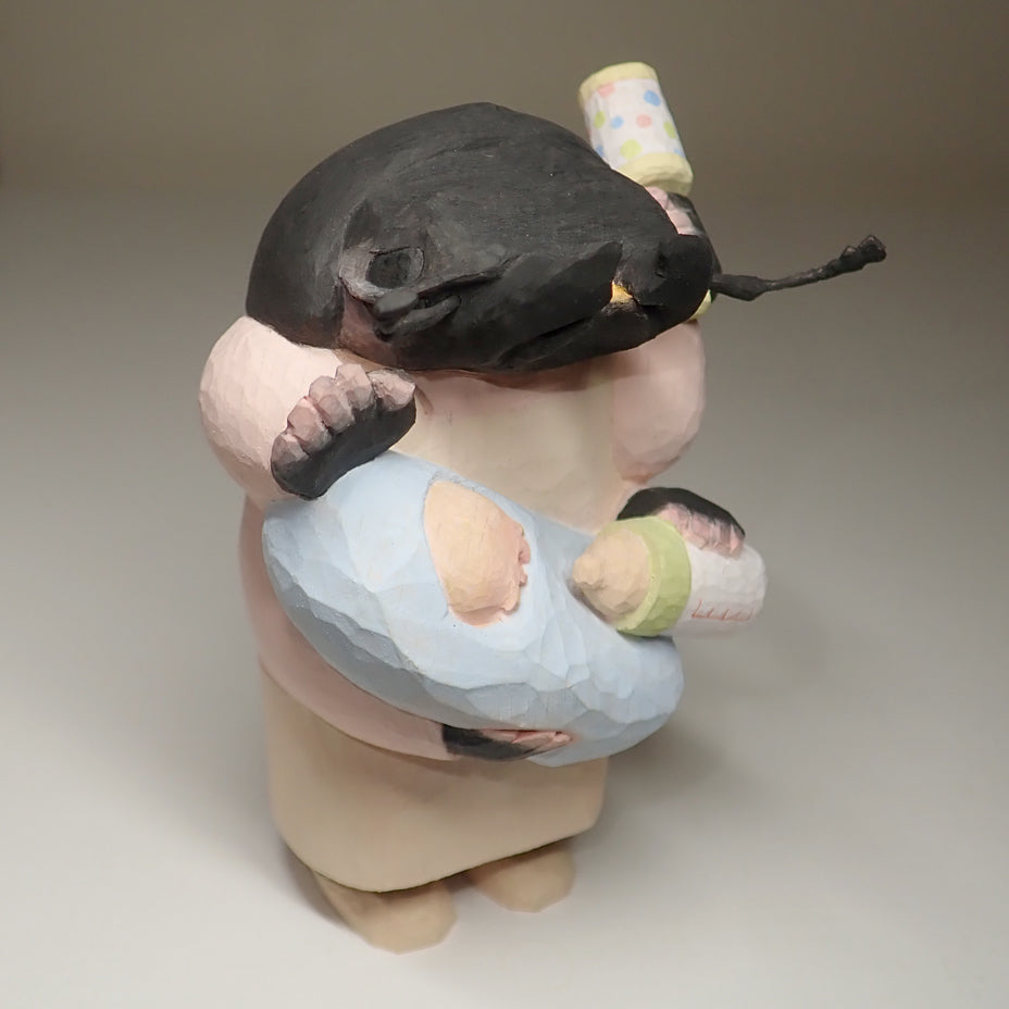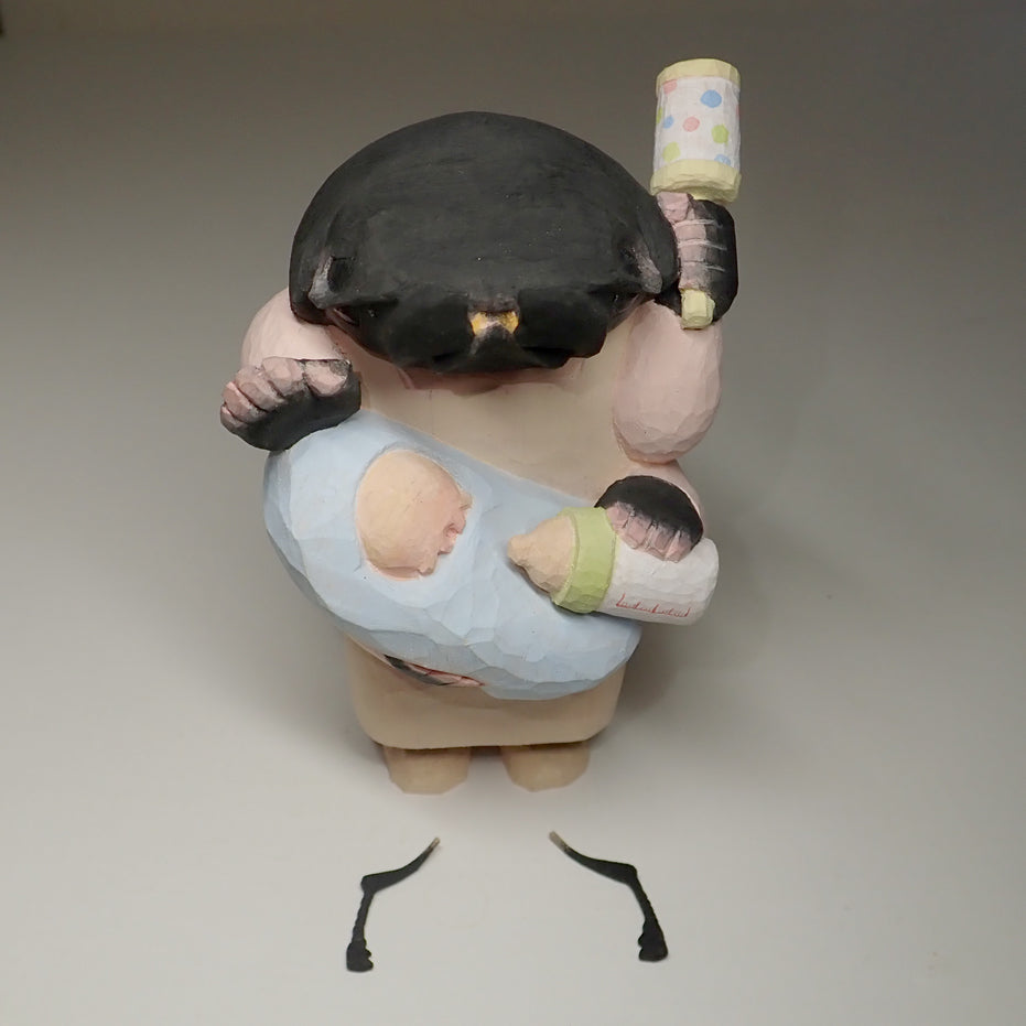 素材はヒノキ(一部竹)、着彩はアクリル絵の具です。
