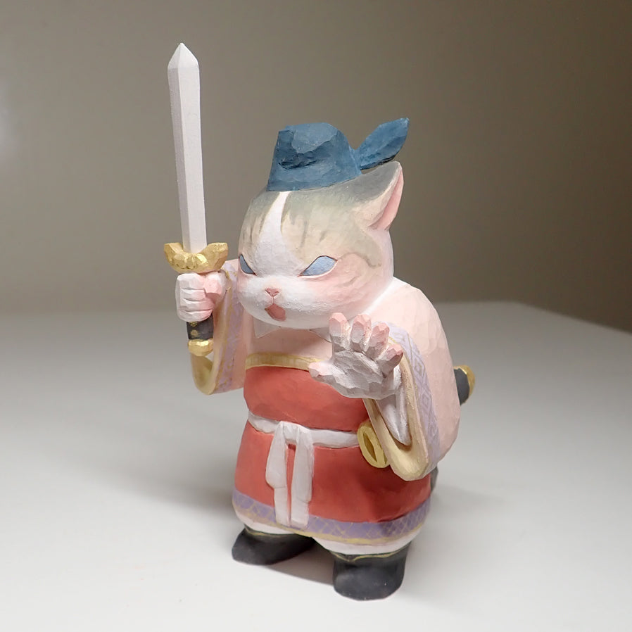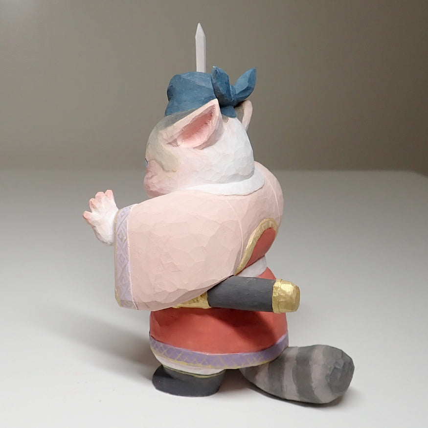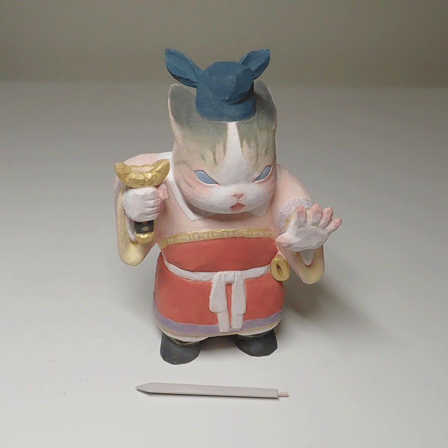 The material is cypress(partly bamboo), and the coloring is acrylic paint.