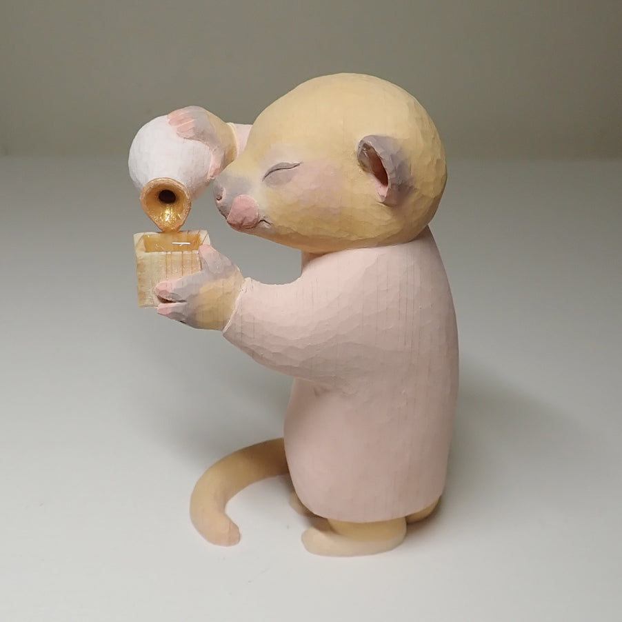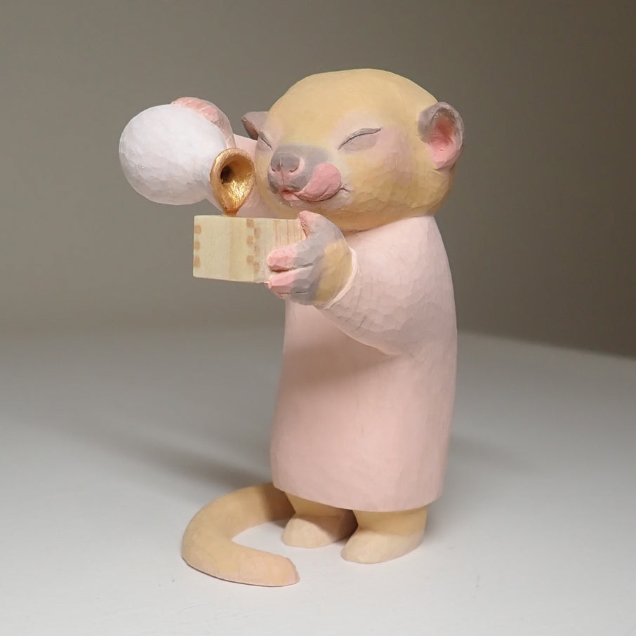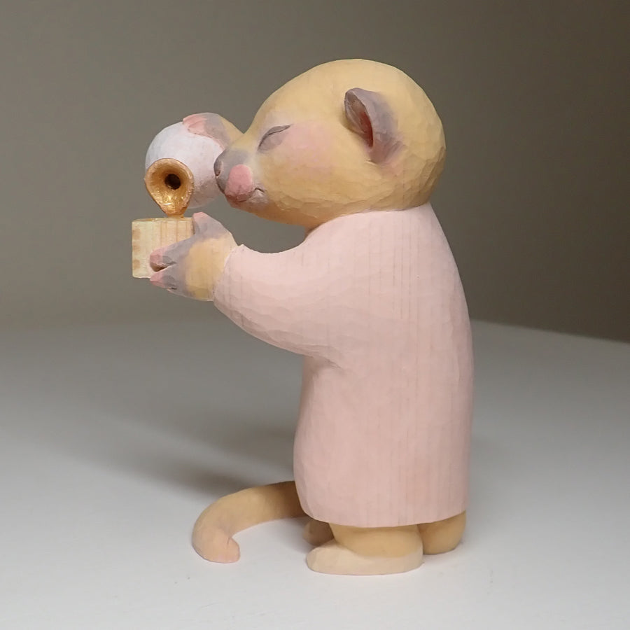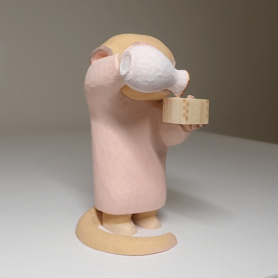 素材はヒノキ(一部樹脂)、着彩はアクリル絵の具です。