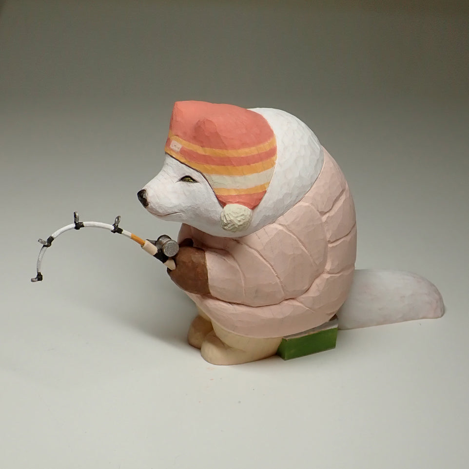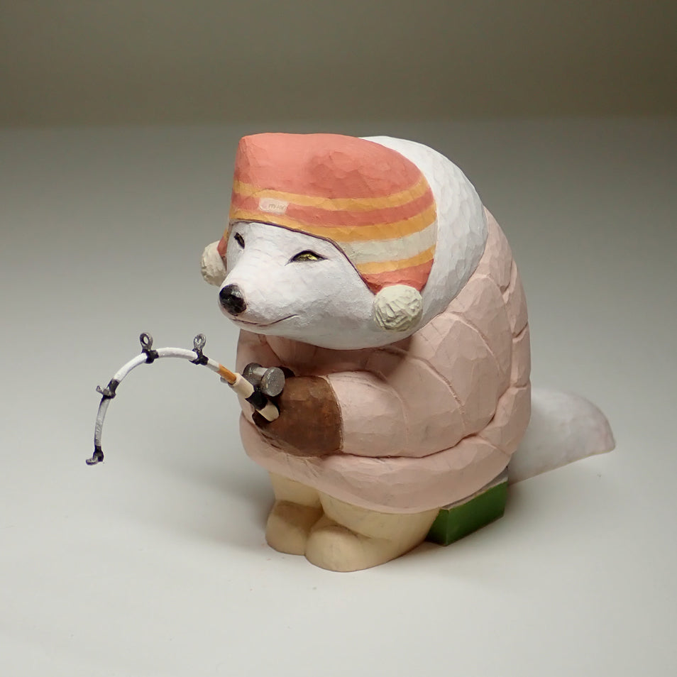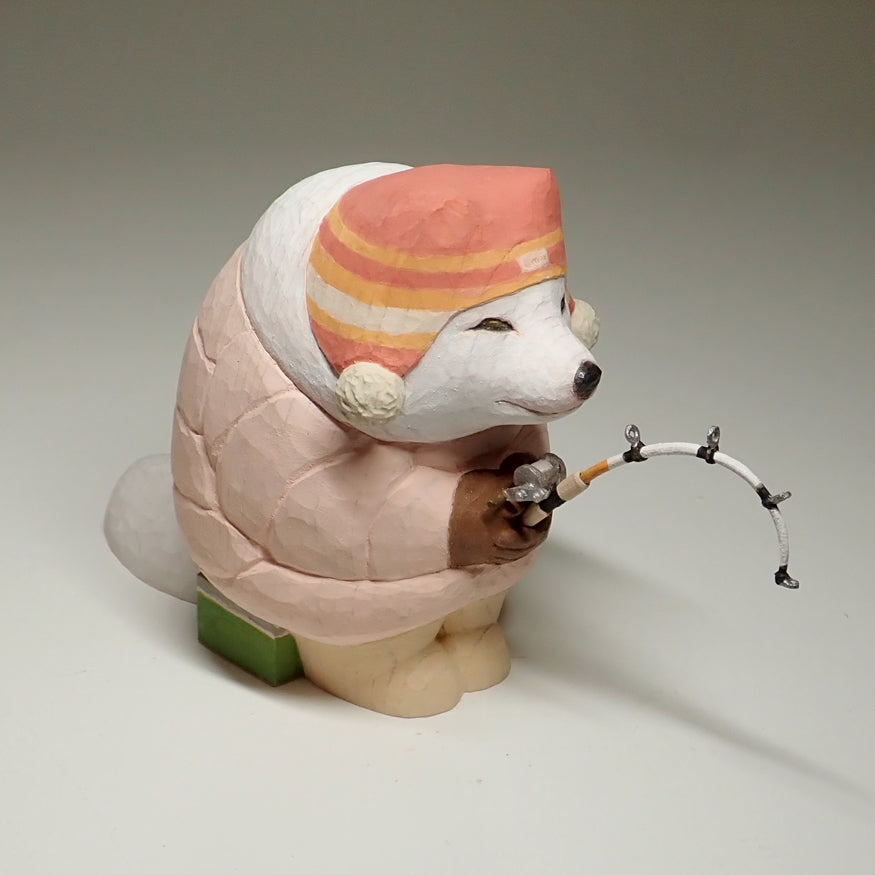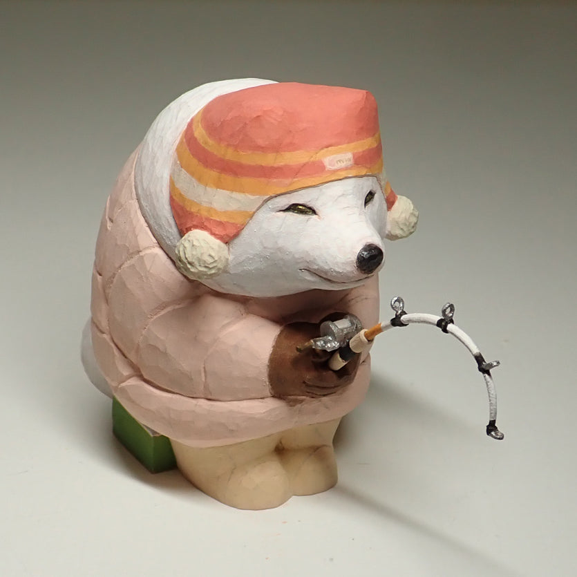 素材はヒノキ(一部竹)、着彩はアクリル絵の具です。
