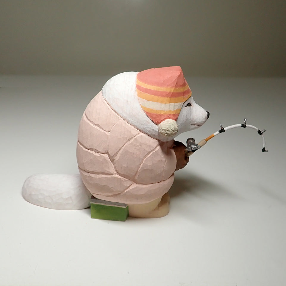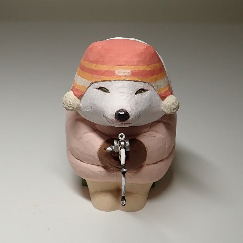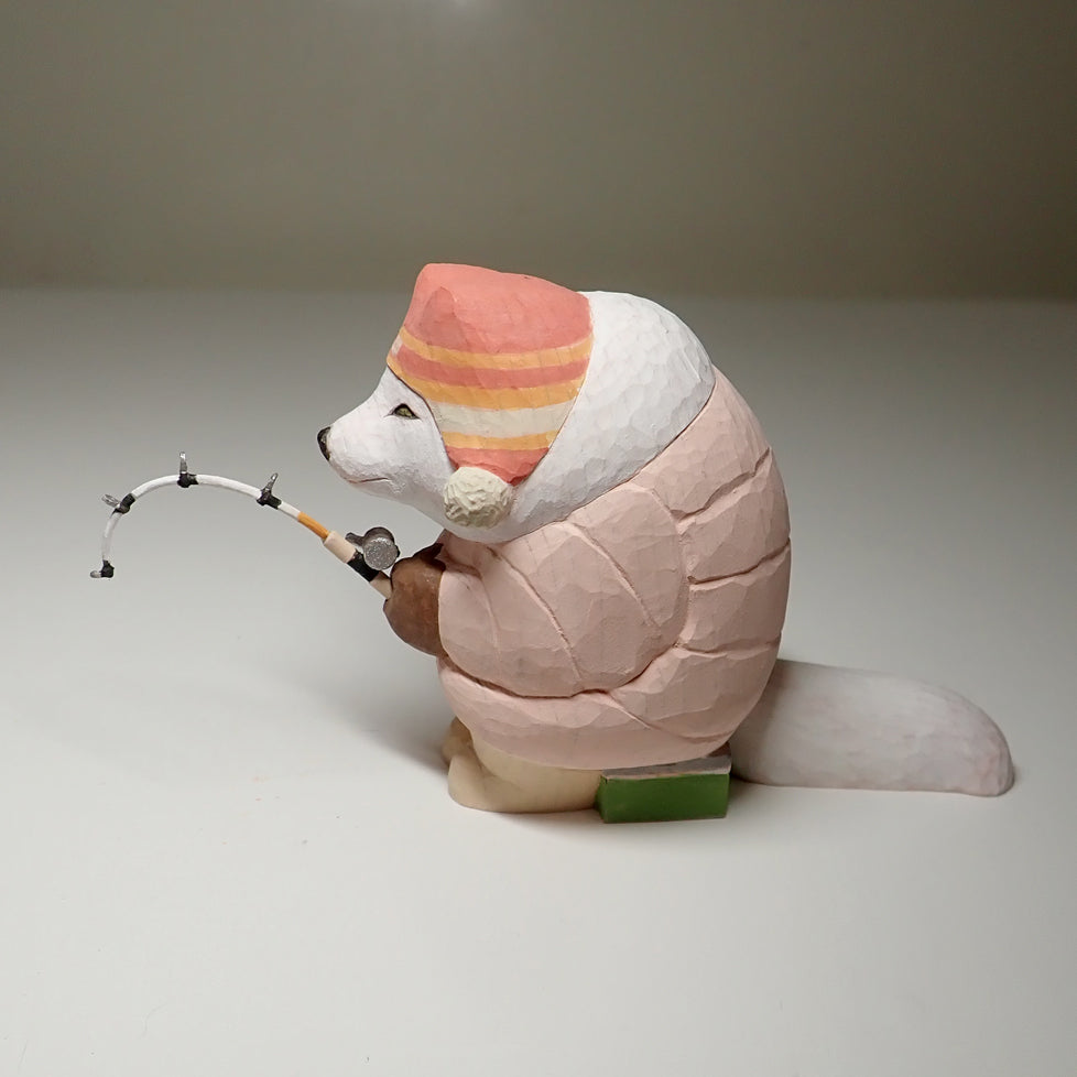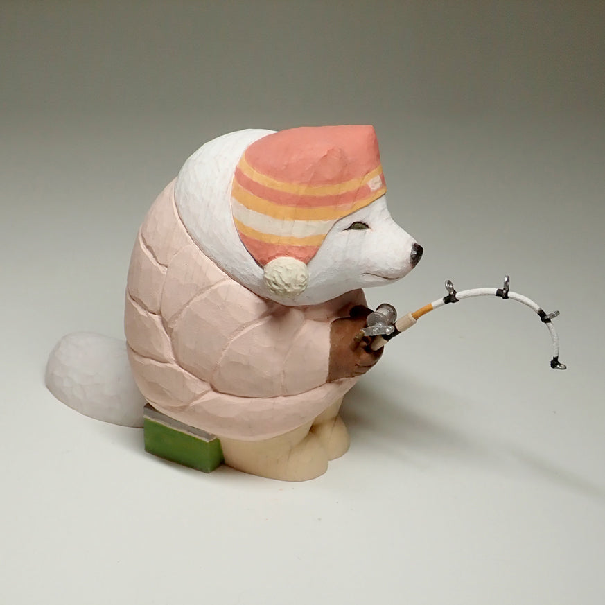 素材はヒノキ(一部竹)、着彩はアクリル絵の具です。