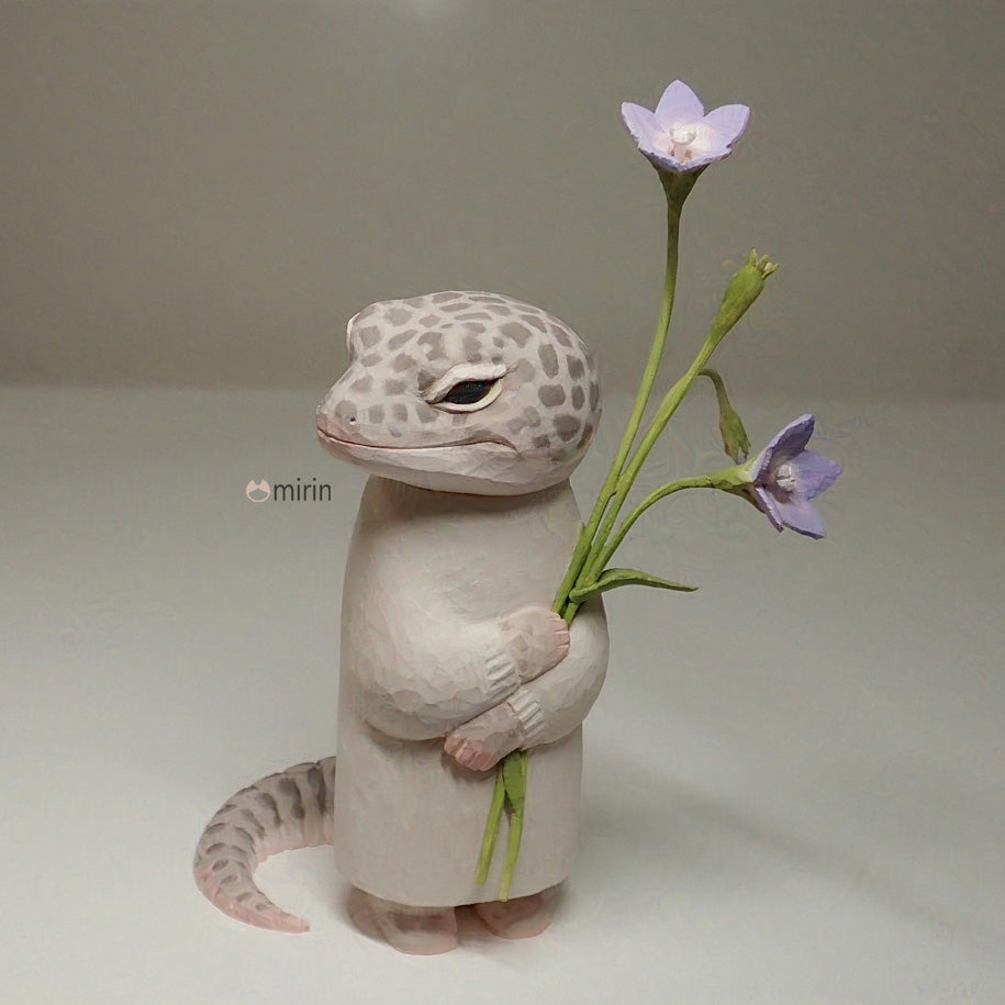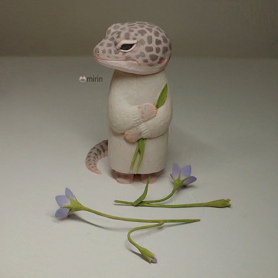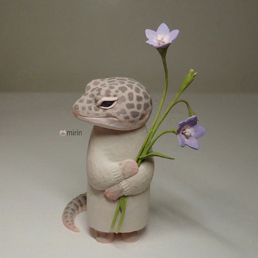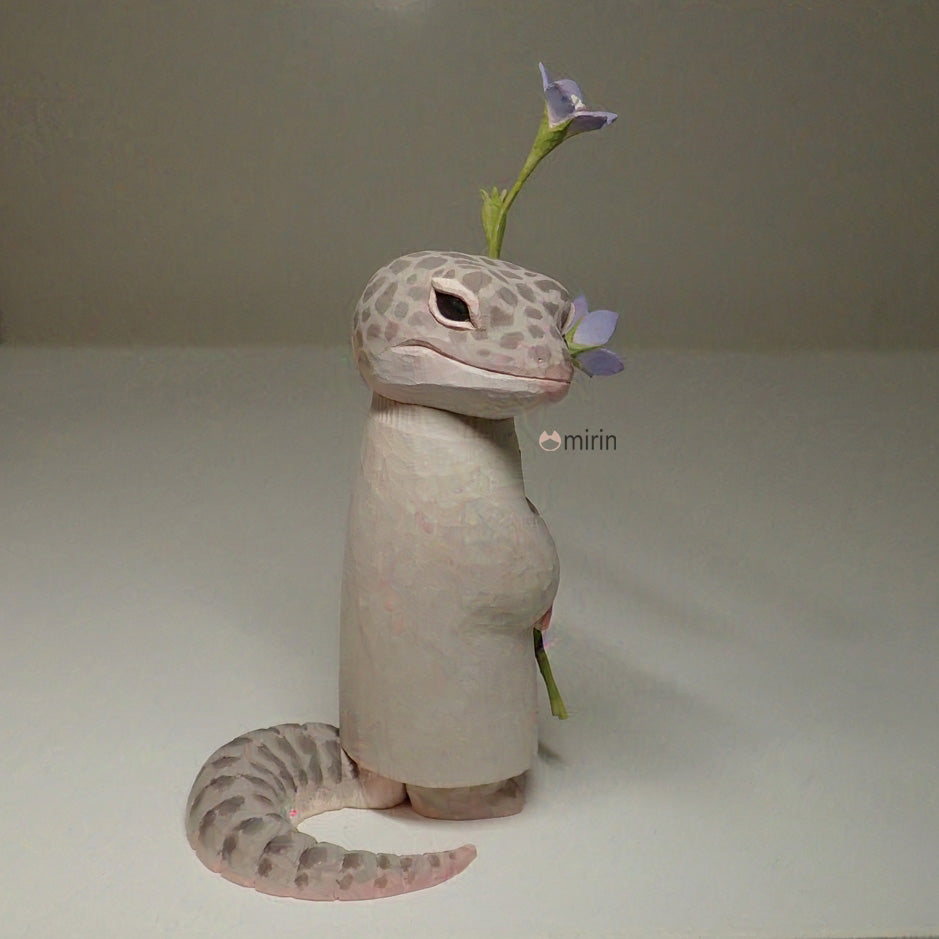 木彫りのヒョウモントカゲモドキ(スーパーマックスノー)です。
