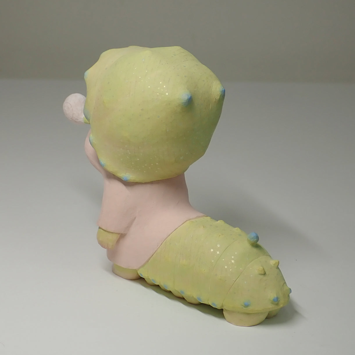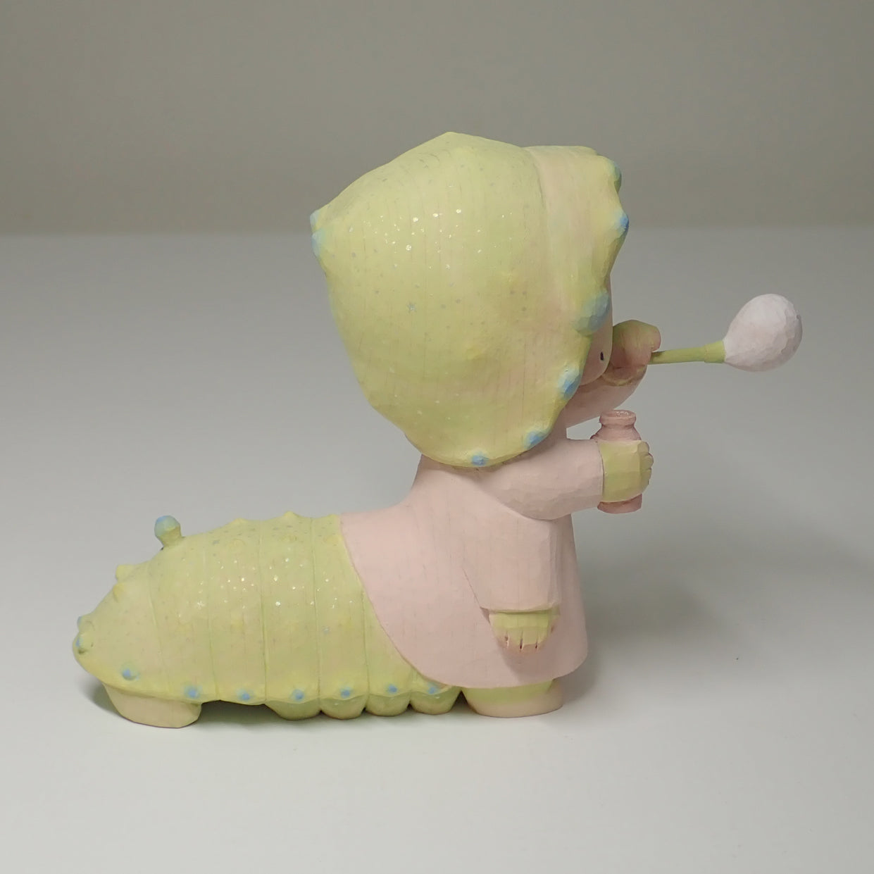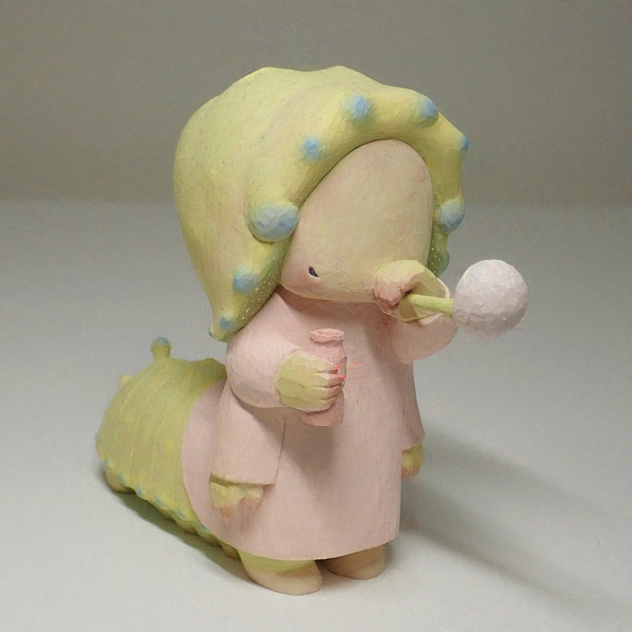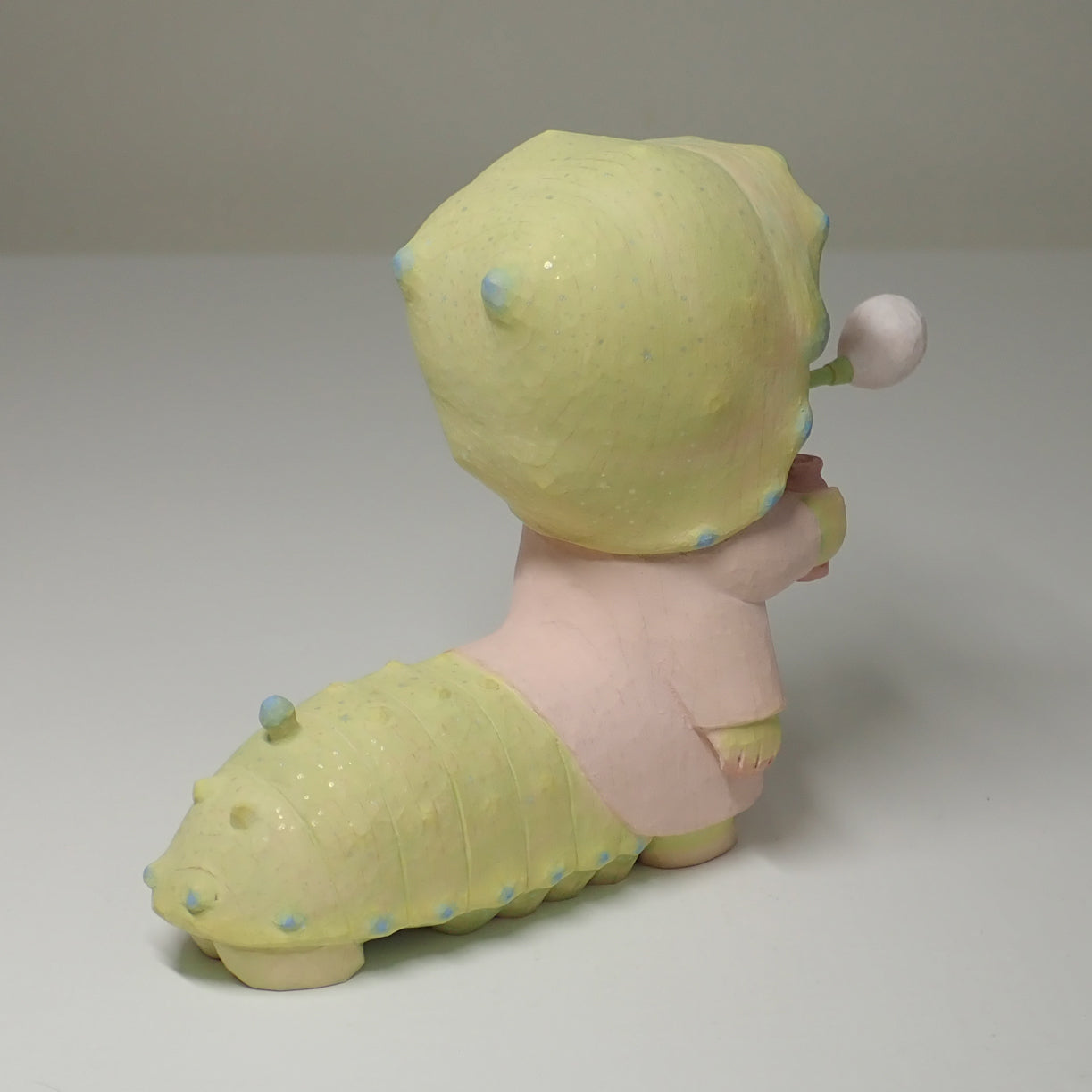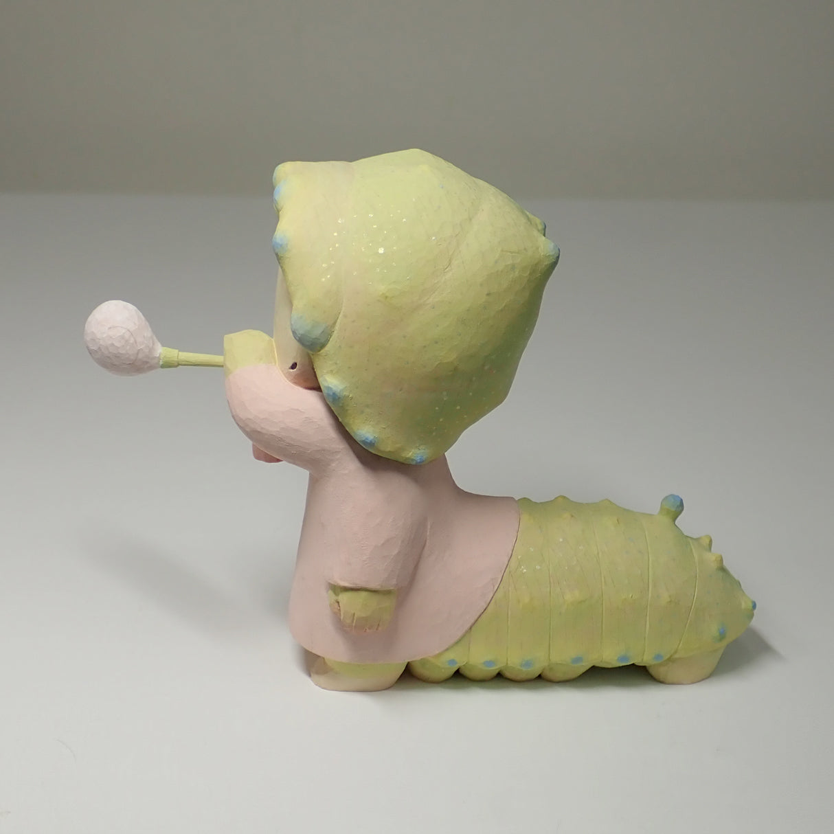 This is a wood carving of a larva (Rhodinia fugax).