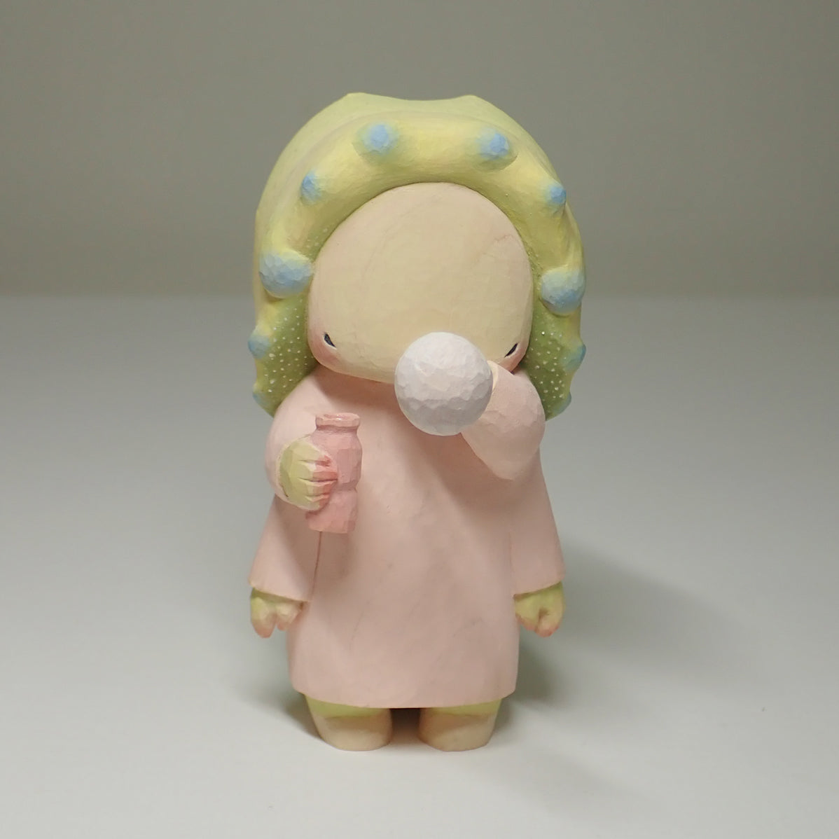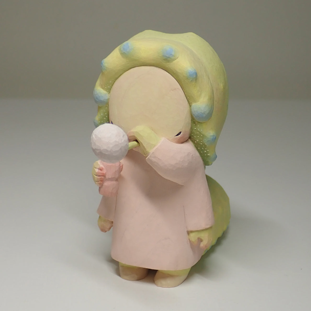 素材はヒノキ、着彩はアクリル絵の具です。