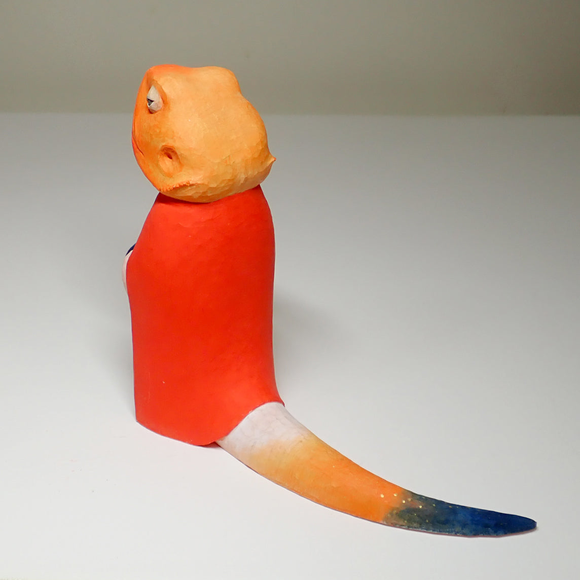 素材はヒノキ、着彩はアクリル絵の具です。