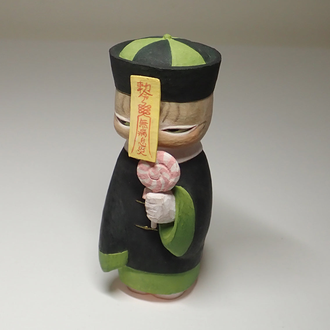 素材はヒノキ、着彩はアクリル絵の具です。