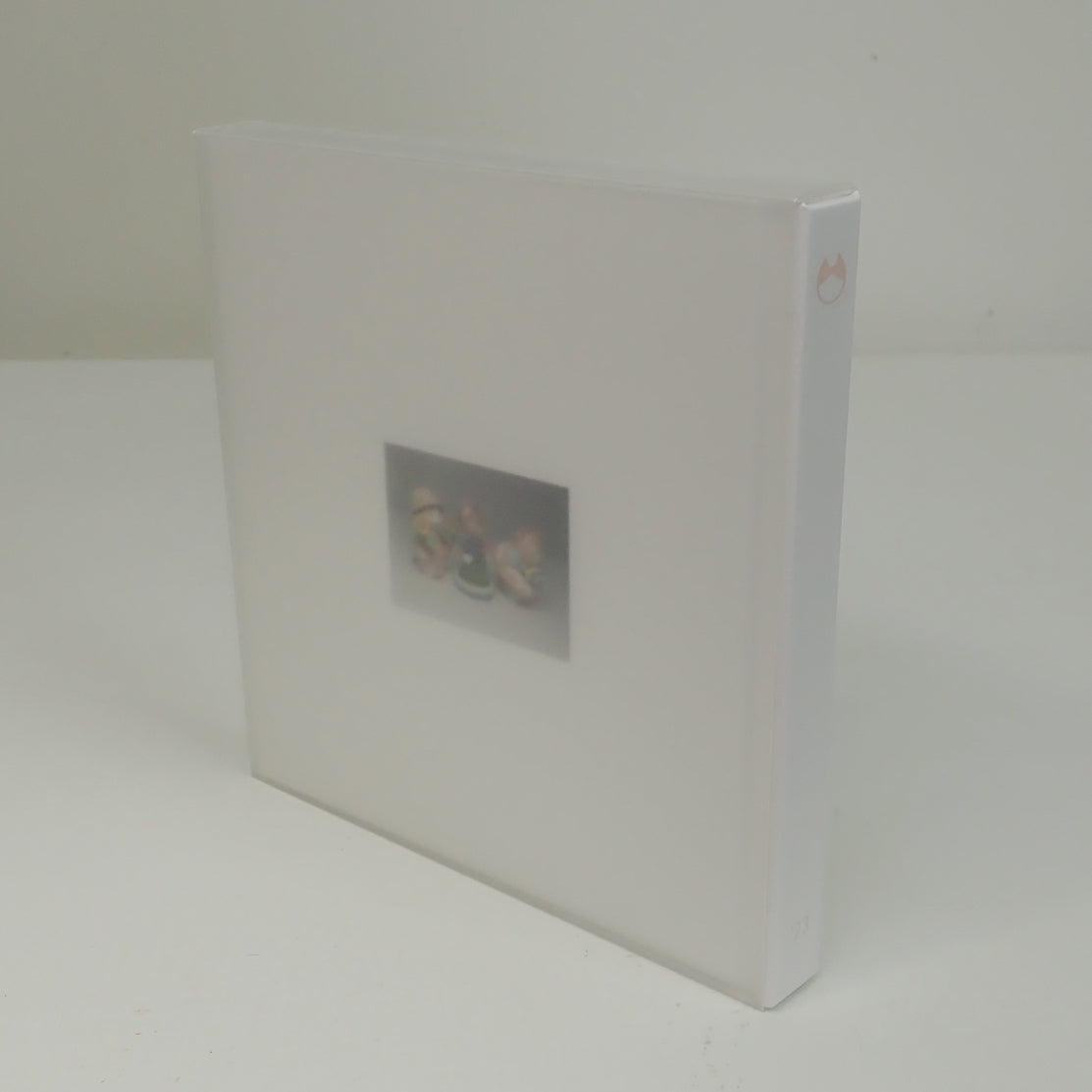 CDサイズ(外寸:130mm x 130mm 内寸:124mm x 124mm)、ハードカバー、70p、無線綴じです。