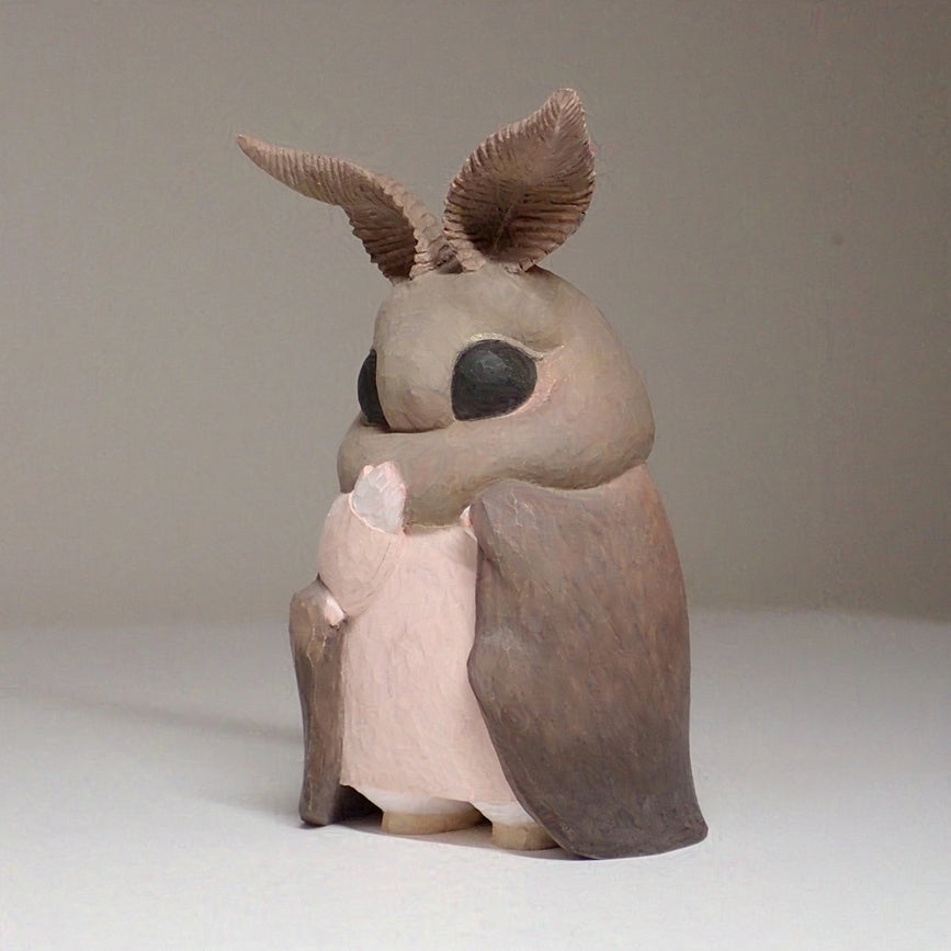 This is a wood carving of a moth ( Psychidae(Mahasena aurea)).
