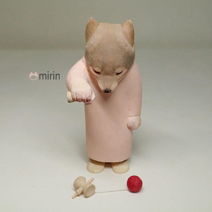 素材はヒノキ(一部竹、木綿糸)、着彩はアクリル絵の具です。