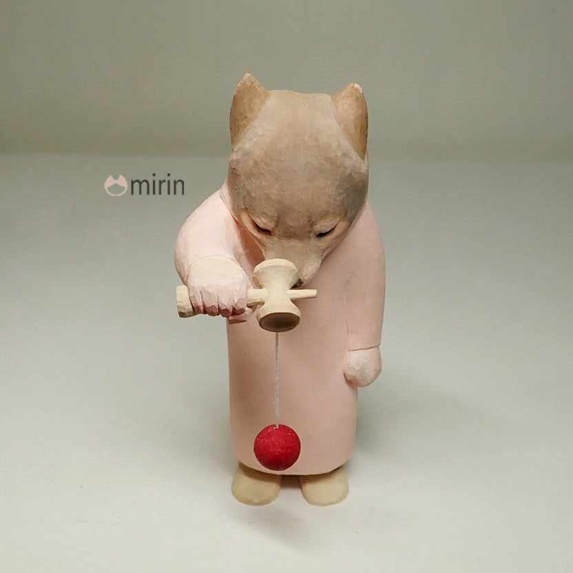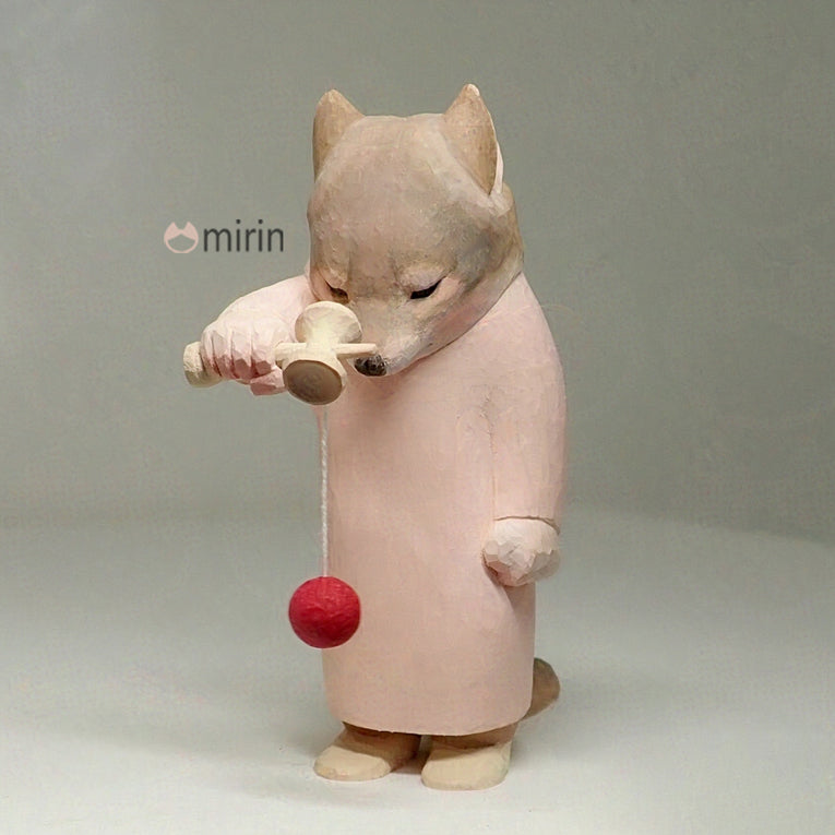 The material is cypress (partly bamboo, cotton thread), and the coloring is acrylic paint.