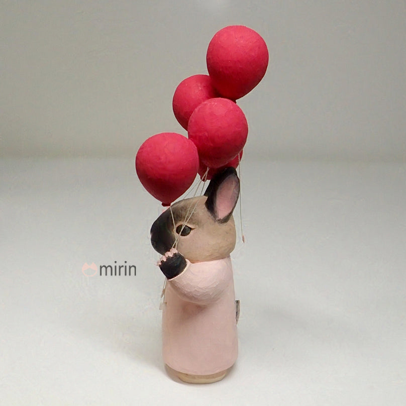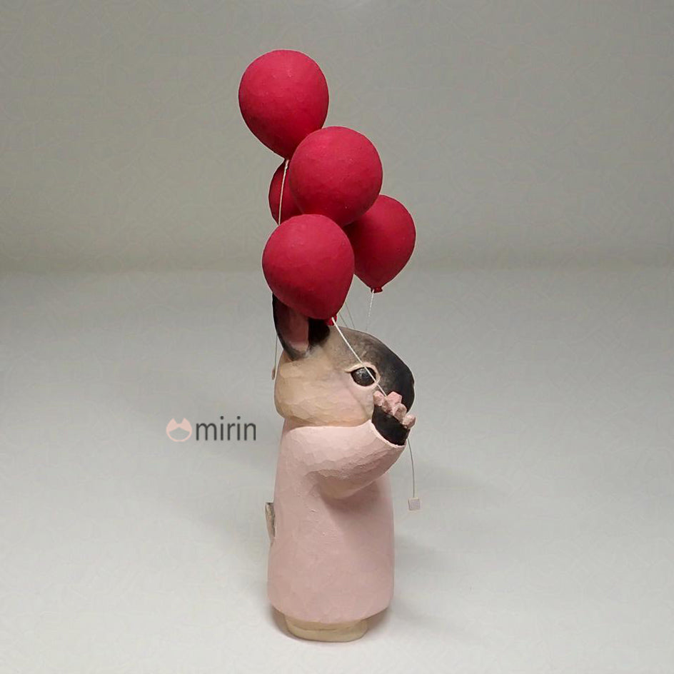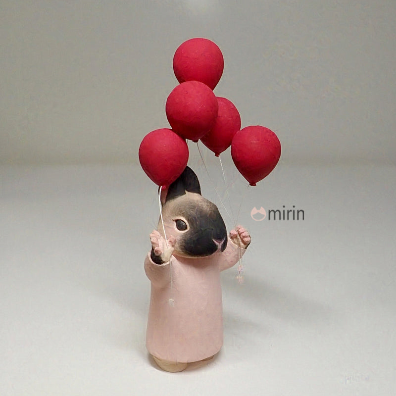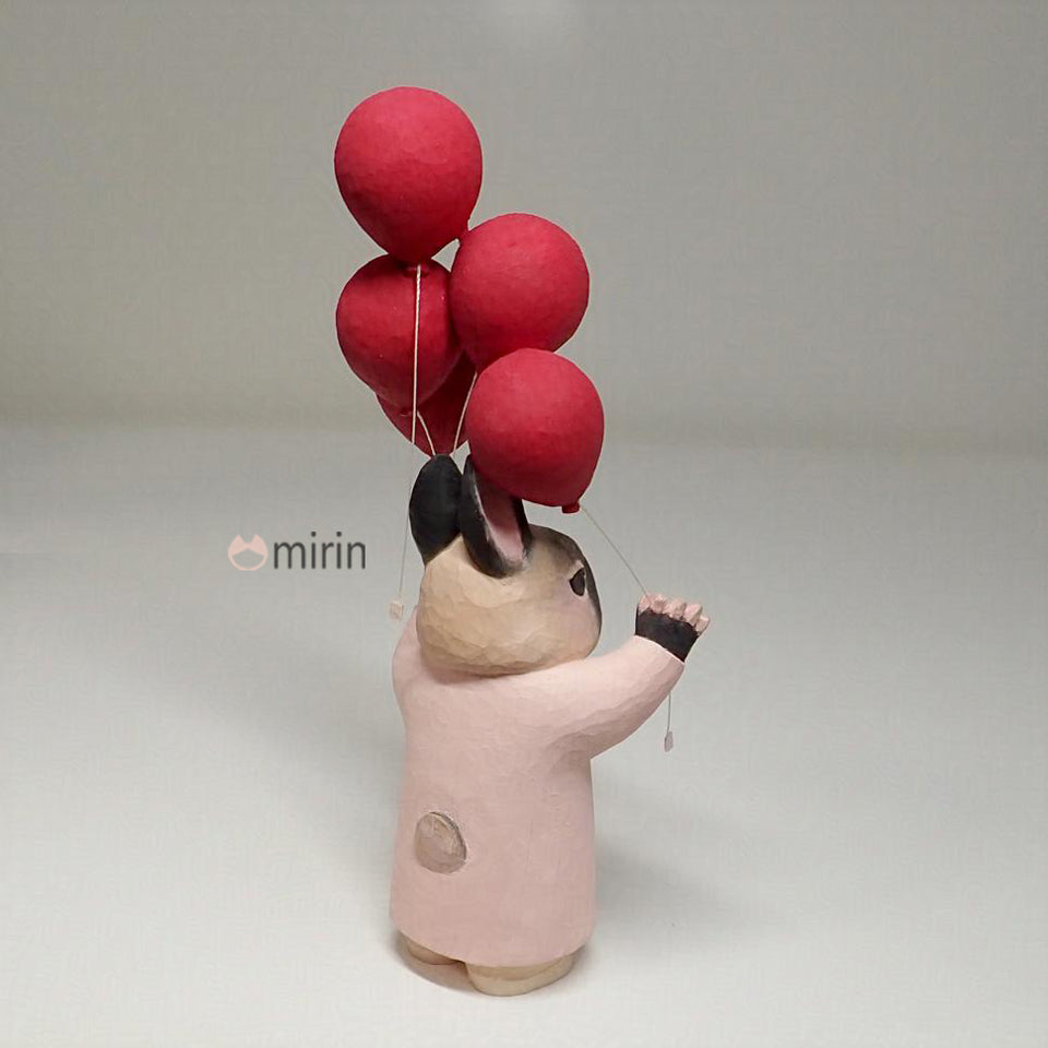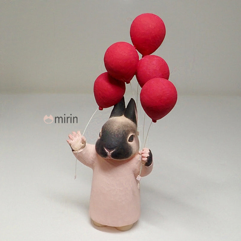 風船の紐は風船側にのみ接着されていて、うさぎの手の側とは接着されていません。紐の垂れさがり方はお好みで配置してください。 また、風船と紐は接着剤で接着されているため、強く引っ張ると取れてしまいますので、取り扱いには注意してください。