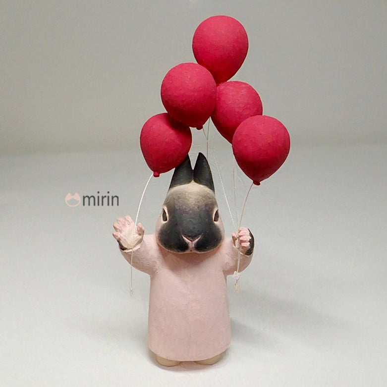 The string of the balloon is glued only to the balloon side, not to the side of the rabbit's hand. You can arrange how you want to hang the string as you like. Also, since the balloons and strings are only glued together, they will come off if pulled too hard, so please handle with care.