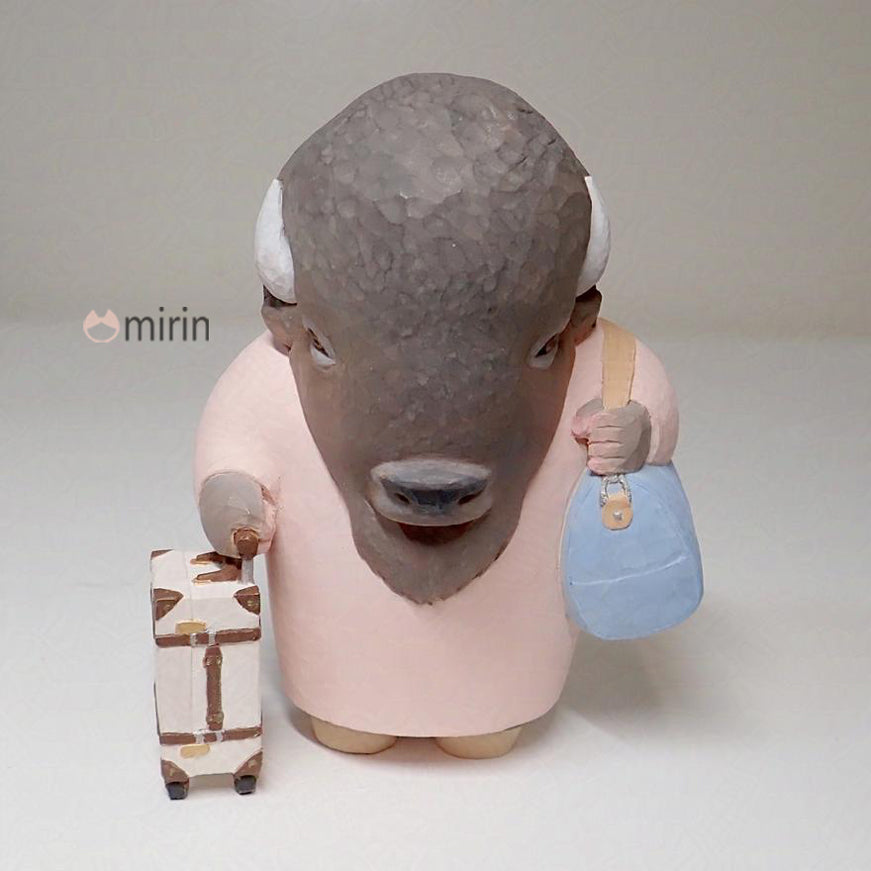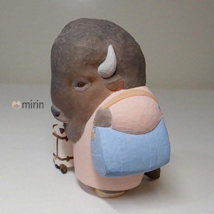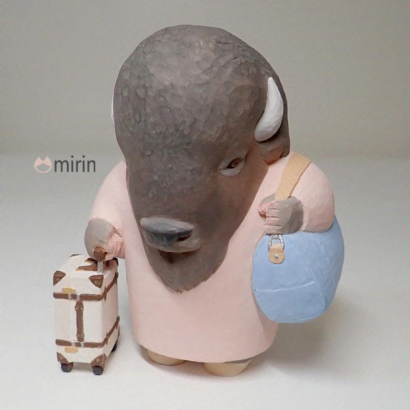 素材はヒノキ(一部竹)、着彩はアクリル絵の具です。